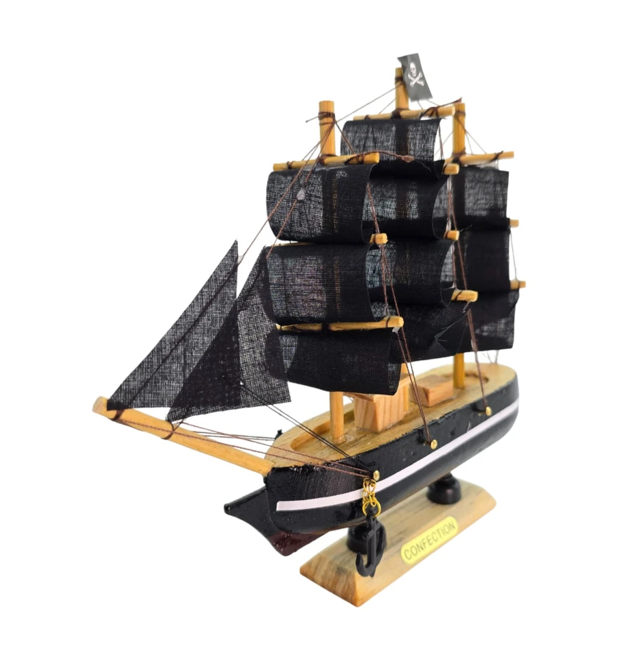 корабель декор, піратський корабель, модель вітрильника, чорні вітрила, настільна статуетка, інтер'єрний декор, подарунок чоловікові, подарунок моряку, морський стиль, офісний декор, символ подорожей, талісман успіху
