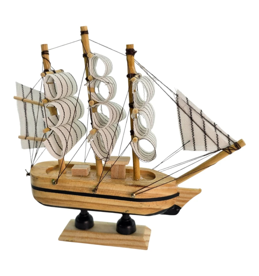 Мініатюрний корабель з дерева та тканини стильний акцент для будинку або офісу. У традиції фен-шуй вітрильник символізує подорожі, успіх та «приплив» достатку. Статуетку ставлять на полицю, стіл, камін або до кабінету, розгортаючи носом у кімнату, щоб «впускати» удачу та нові можливості. Відмінний подарунок мандрівникові, моряку, колезі та всім любителям морської теми.