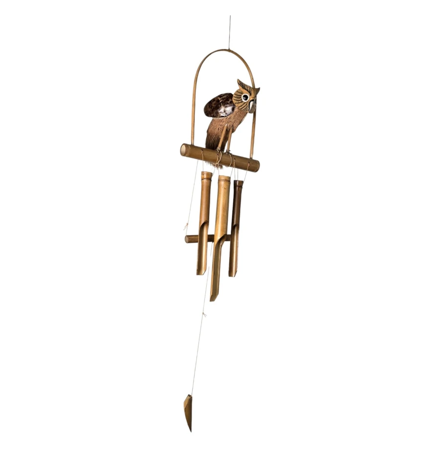 музика вітру, бамбукові дзвіночки, сова декор, підвісний декор, декор балкона, декор тераси, садовий декор, фен шуй дзвіночок, натуральний бамбук, індонезія ручна робота, подарунок для дому
