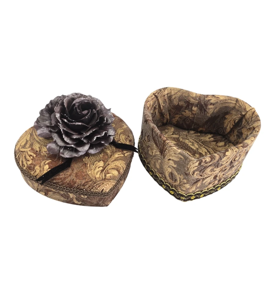 скринька серце, коробочка для прикрас, скринька для біжутерії, подарункова коробочка, для кілець, для сережок, декоративна скринька, тканинна скринька, скринька з кришкою, коробочка з квіткою, сувенірна коробочка