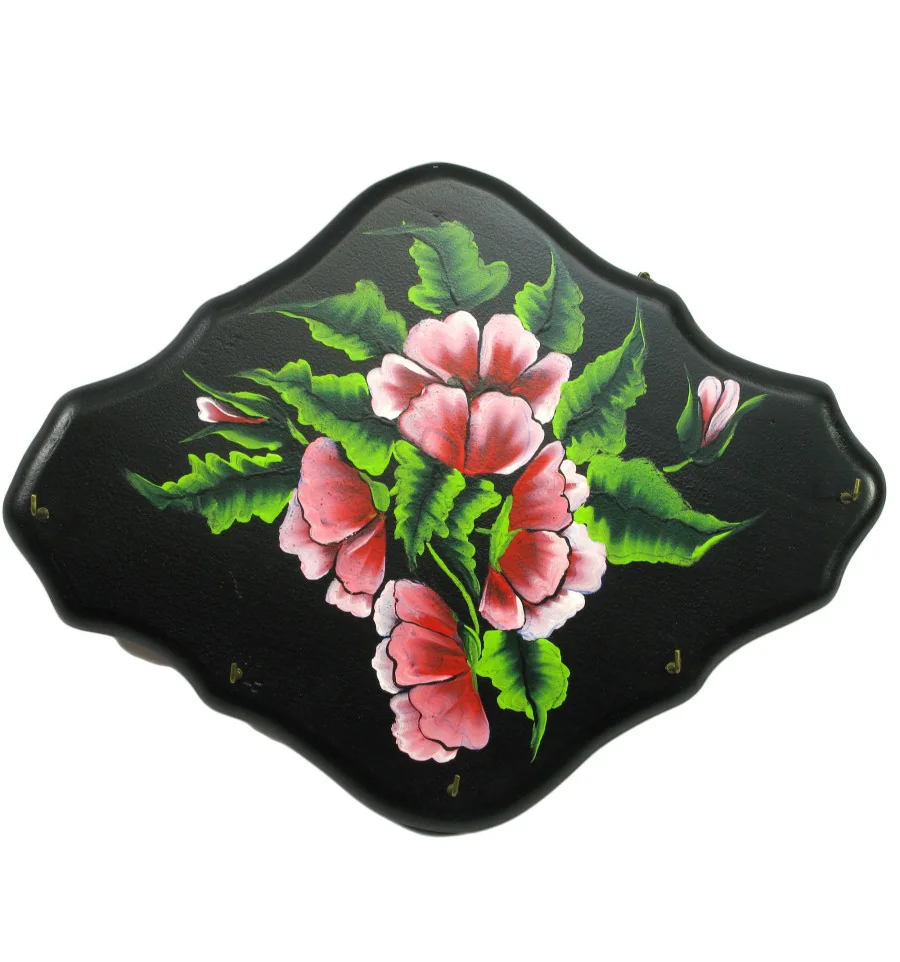 Ключниця вішалка «Ажур», чорна, розписано вручну, масив дерева (32×25 см)