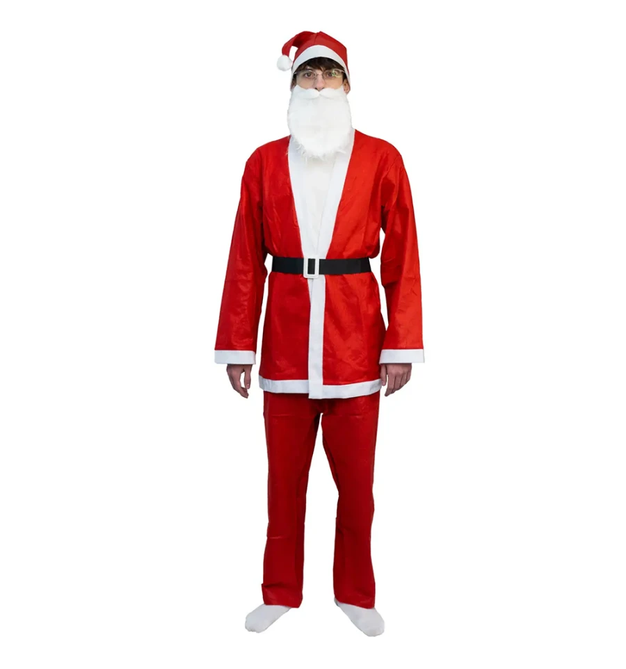 Додаткові характеристики | Пояс - довжина - 135см, ширина - 4,5см Куртка - плечі - 48см, рукав - 63см, довжина по спині - 85см Шапка – довжина - 39см ширина - 29см, штани - ширина - 60см довжина - 98см Борода – довжина 27 см. на зріст 170 |