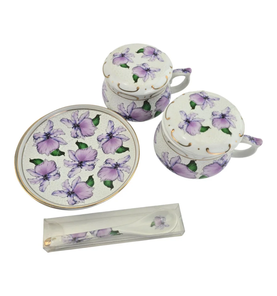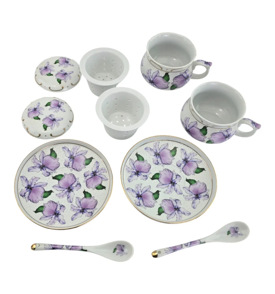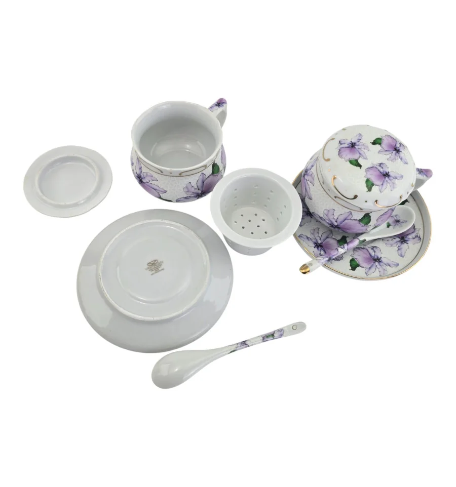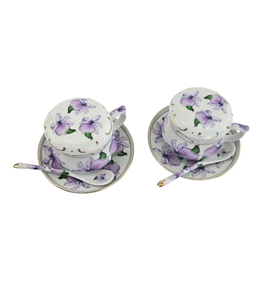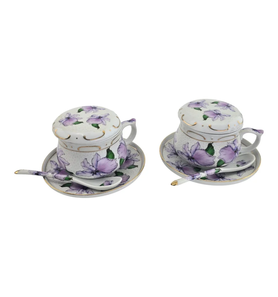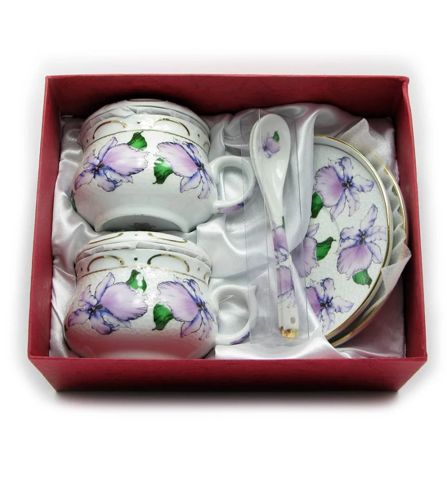 Сервіз фарфор (190мл.) (2GBC-A1093SP) 2 чашки + 2 блюдця + 2 ложки "Квіти на білому тлі" (h-6см., d-7см.)
