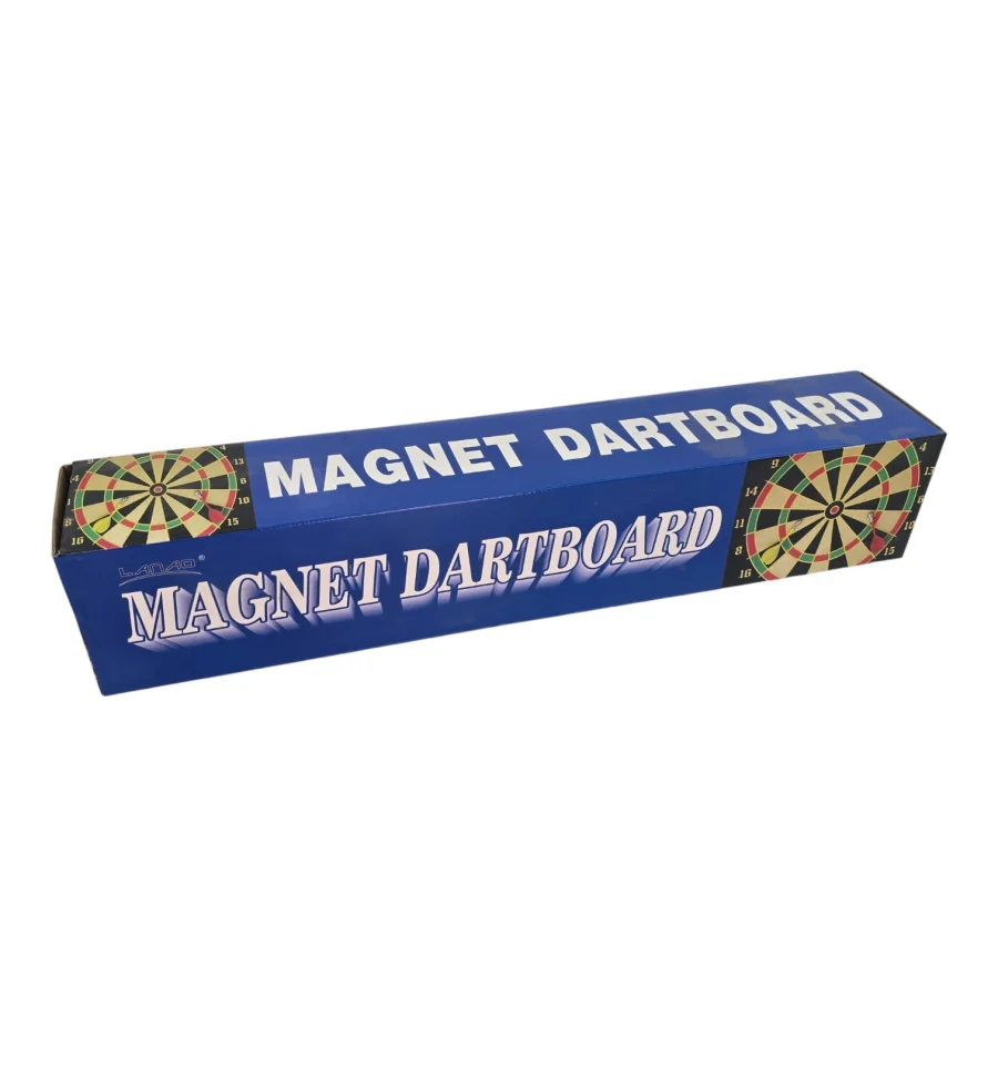 Комплектація: двостороння мішень, 6 магнітних дротиків (2 кольори), шнурок для підвісу, інструкція, коробка