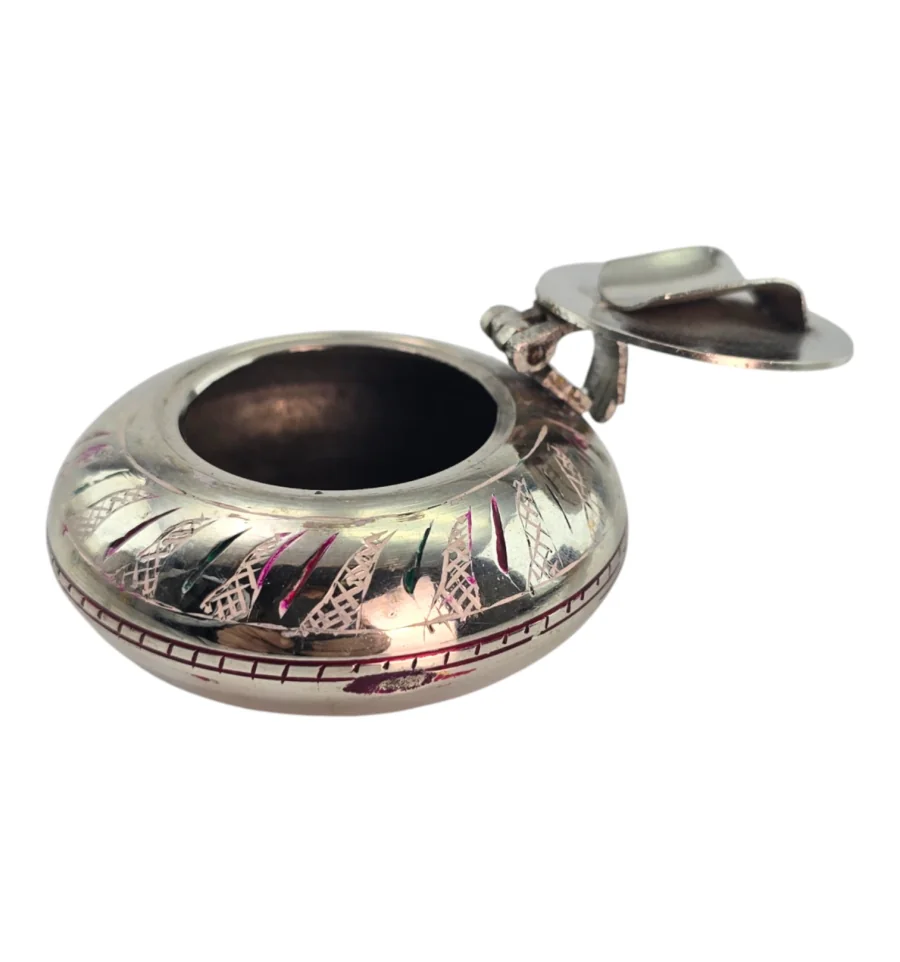 попільничка, попільничка настільна, попільничка з кришкою, латунна попільничка, подарунок курцеві, індійський сувенір, компактна попільничка, дорожня попільничка, попільничка кругла