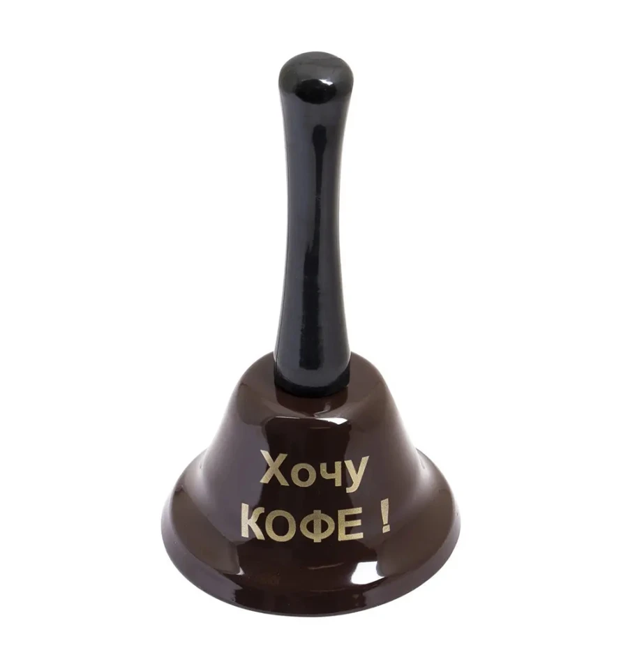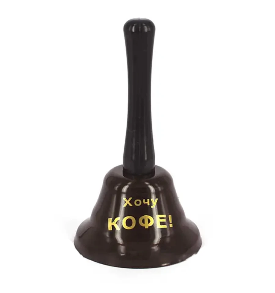 Дзвіночок Хочу кофе (коричневий) - Ваш особистий бариста на відстані дзинь! Ранок починається не з кави, а з дзвінка! Якщо ви не уявляєте свого життя без ароматного еспресо чи ніжного лате, цей аксесуар створений саме для вас. Це стильний і жартівливий спосіб натякнути близьким або колегам, що настав час для кава-паузи. Виконується у благородному коричневому відтінку, що ідеально пасує до кавової тематики. Чіткий та зрозумілий текст Хочу КОФЕ який одразу розставляє пріоритети. Металевий корпус гарантує приємний чистий звук, який почують навіть на кухні чи в іншому кінці офісу. Займає мінімум місця на робочому столі, поруч із кавоваркою або на приліжковій тумбі для ідеальних сніданків у ліжко. Такий двінок буде чудовим подарунком тим, хто знає різницю між арабікою та робустою і не може прокинутися без магічного напою. Як антистрес-аксесуар на стіл колезі - чудовий привід зробити спільну перерву та обговорити новини. Для створення романтичної або ігрової атмосфери, коли хочеться, щоб про тебе трохи подбали. Оригінальний елемент декору для стійки або реквізит для крутих фото в Instagram. Цей дзвіночок дарує відчуття затишку та передчуття насолоди. Він викликає посмішку та перетворює звичайне приготування кави на маленький ритуал. Це подарунок, який каже: Я знаю, що ти любиш, і хочу, щоб твій день був бадьорим!