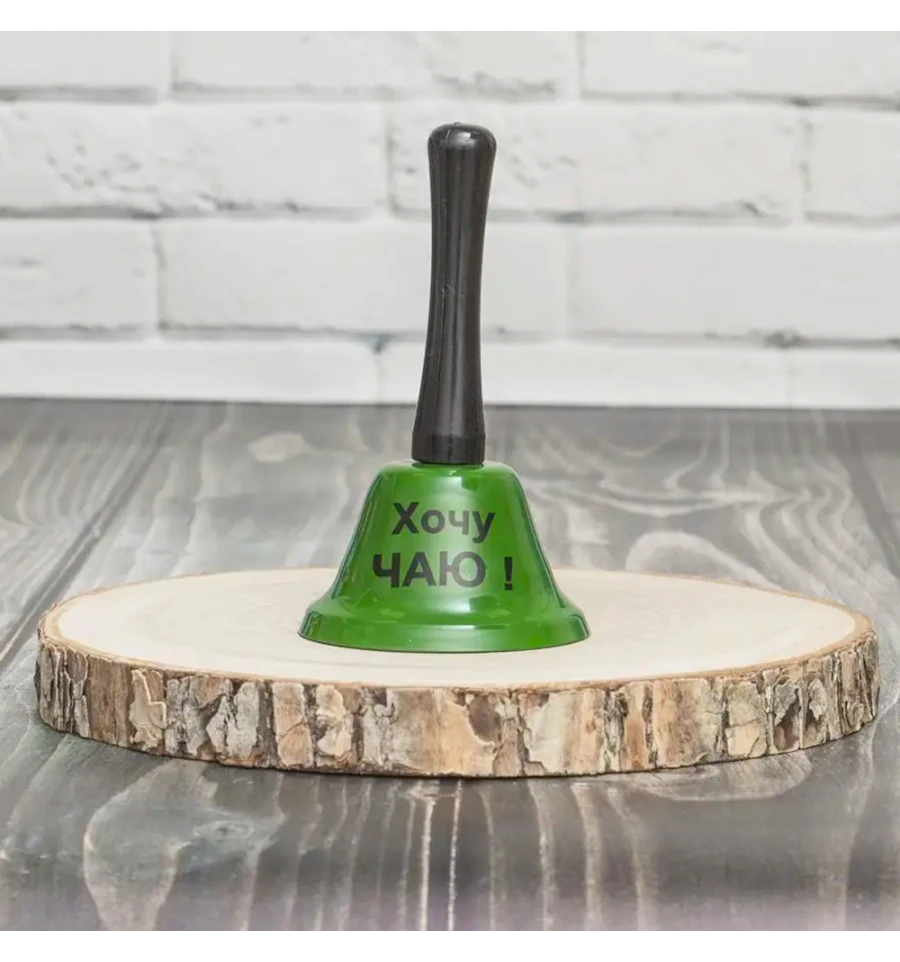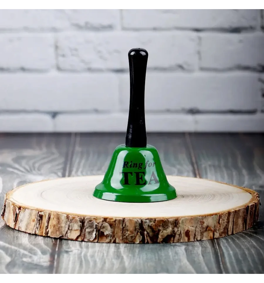 Дзвінок настільний Ring for a TEA - Сигнал до душевного чаювання! Для справжніх поціновувачів чайної церемонії та затишних розмов! Цей настільний дзвінок — наймиліший спосіб сповістити світ (або хоча б домашніх), що настав час заварювати ароматний чай. Жодних вигуків із вітальні - лише один витончений звук, і ваш улюблений напій уже в дорозі. Виконується у благородному зеленому кольорі, що ідеально пасує до чайної тематики підкреслюючи натуральність та природність. На куполі двіночка тескст Ring for a TEA, що додає аксесуару особливого шарму. Дзвіночок має міцний металевий купол та високу ергономічну ручку. Метал забезпечує кришталево чистий і дзвінкий звук. Компактний та ергономічний дзвінок, чудово виглядає поруч із чайним сервізом, на журнальному столику чи на кухонній полиці. Створіть ігрову традицію - хто сьогодні черговий по чаю, той і відгукується на заклик. Чудовий подарунок мамі чи бабусі. Це ідеальний сувенір для тих, хто тримає дім у теплі та обожнює приймати гостей. Та стане в нагоді для тих, хто надає перевагу спокійним чаюванням замість кавової метушні. Це чудовий спосіб розрядити напружений робочий день. Дзвінок Ring for a TEA асоціюється зі спокоєм, домашнім теплом та турботою. Він дарує відчуття англійської вишуканості та перетворює звичайне пиття чаю на маленьку приємну подію. Це подарунок, який спонукає зупинитися на мить і насолодитися смаком.