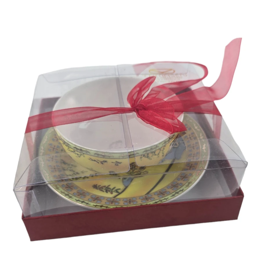 Цей набір відрізняється яскравим дизайном із зображенням традиційних китайських сцен на жовтому фоні, що надає йому особливого колориту та шарму. Кожен елемент набору детально опрацьований, що робить його справжнім витвором мистецтва.