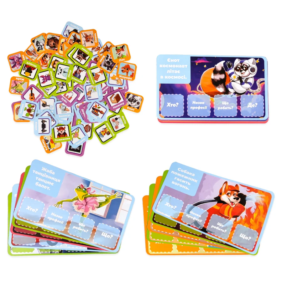 Комплектація | коробка, картки — 20шт., жетони — 80шт., інструкція — 1шт. |