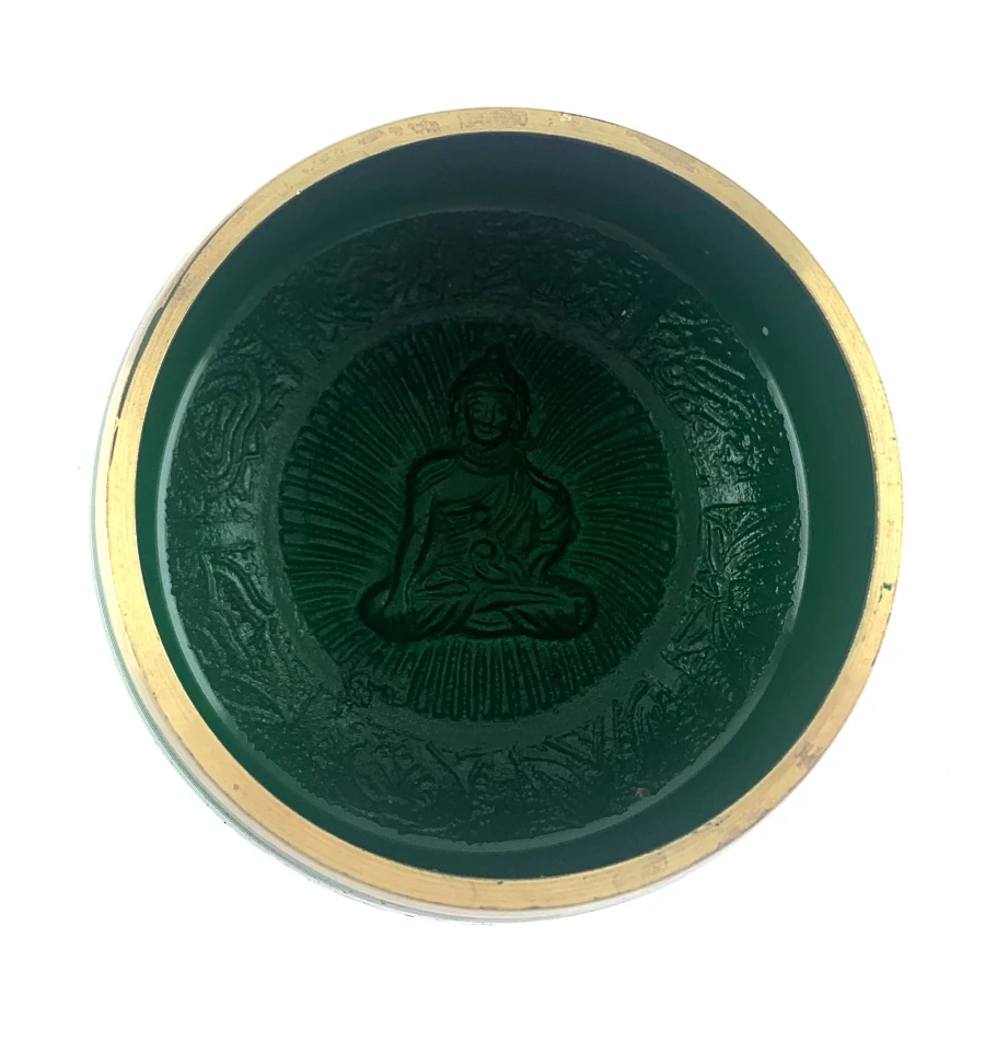 Співоча чаша бронзова "Будда" зелена (10.1х 9.2х 4.9 см)