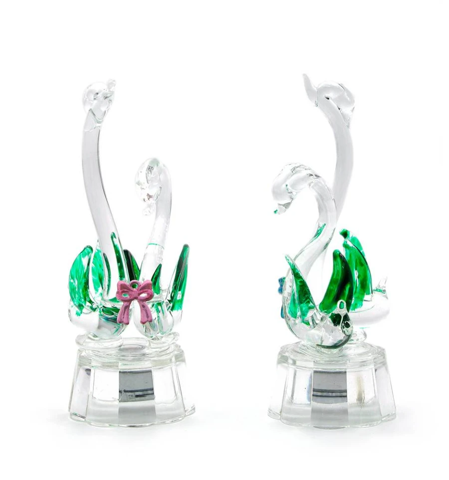 Лебеді з бантиком кришталеві з підсвічуванням (10×5×4 см)