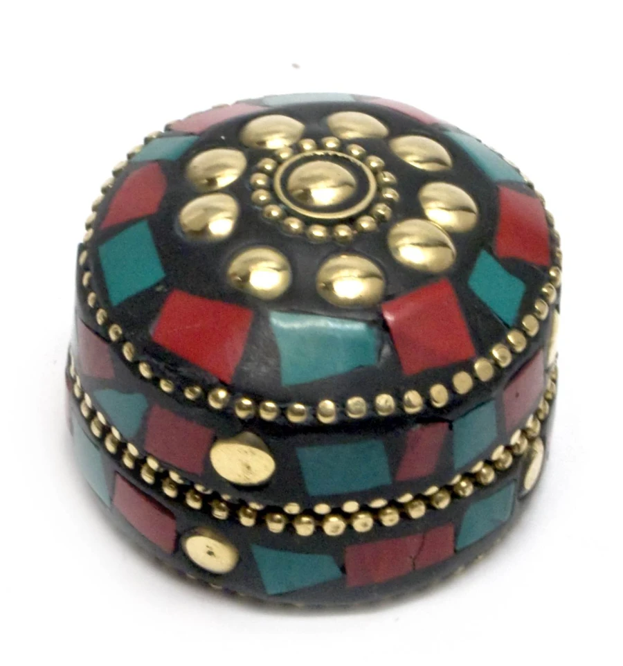Шкатулка металическая с кораллами и бирюзой (d-3.5 см h-2 см) купить в интернет магазине подарков ПраздникШоп