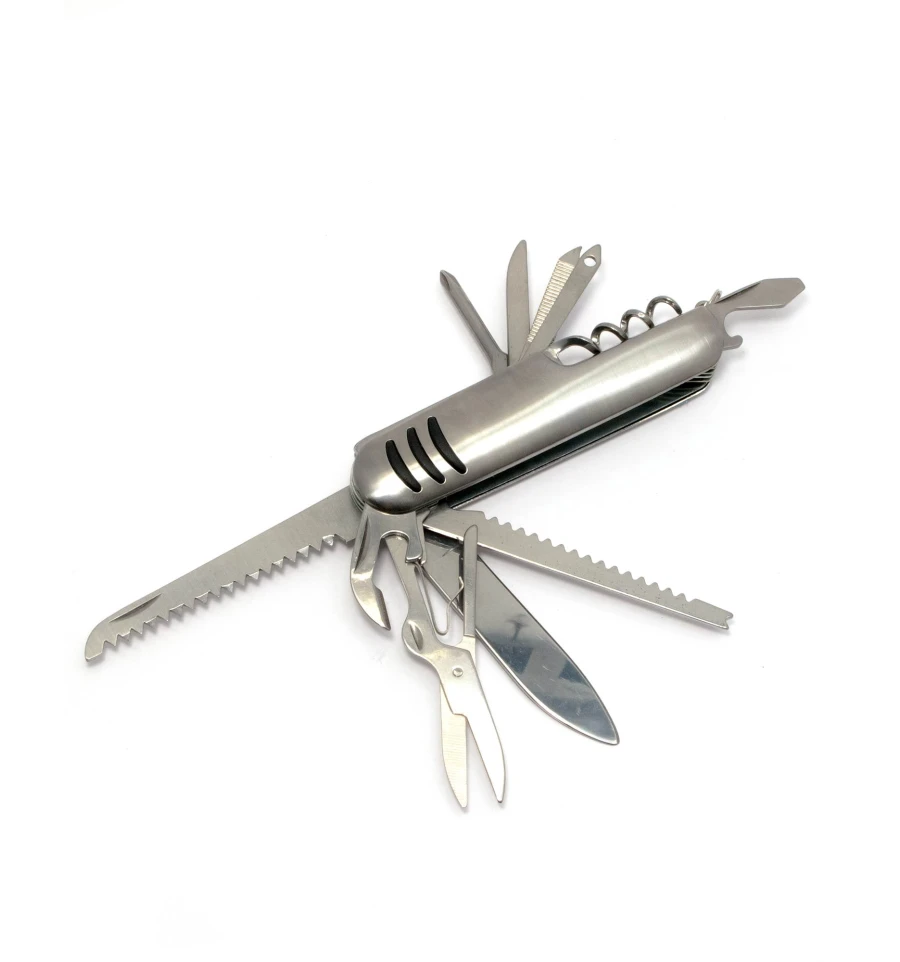 У нас є складний ніж з набором інструментів, в якому представлено 11 функцій. Цей універсальний ніж буде корисним у різних ситуаціях і дозволить вам мати під рукою кілька інструментів в одному компактному пристрої.