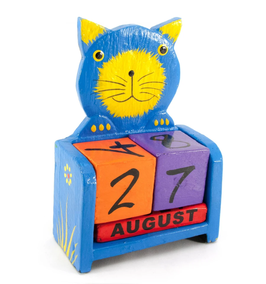 Вечный календарь «Кот» дерево синий (15×10×5 см) купить в интернет магазине подарков ПраздникШоп