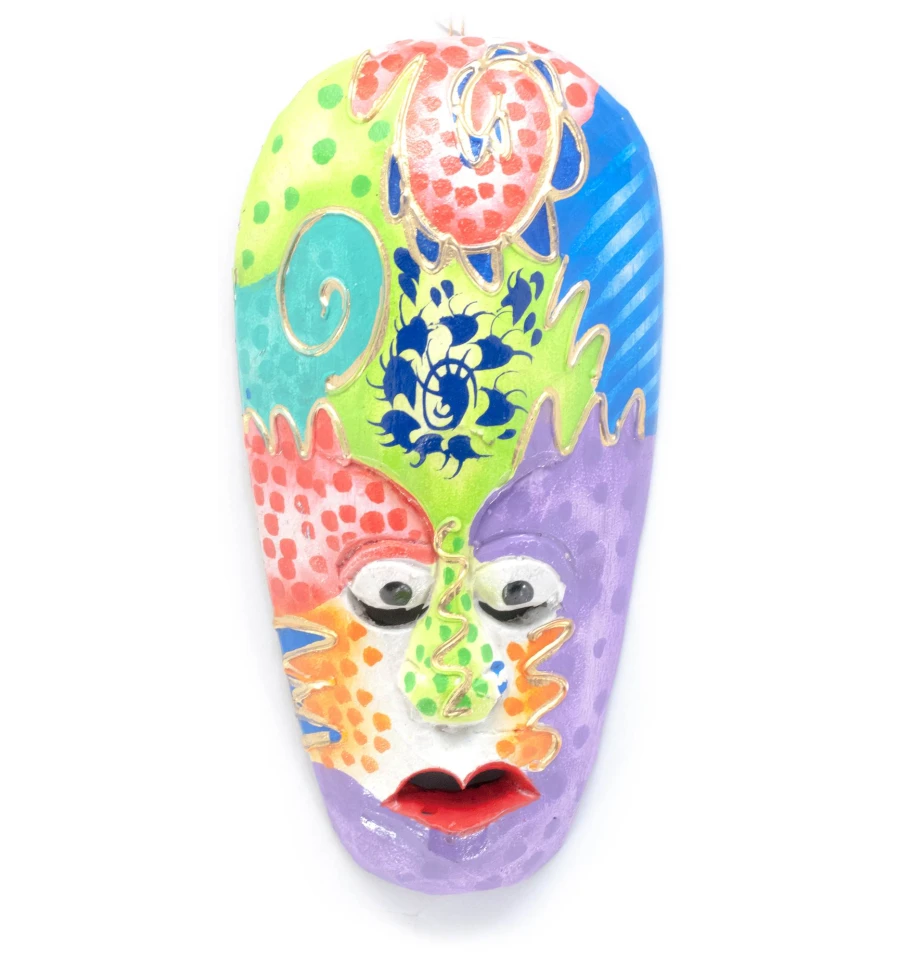 Індонезія знаходиться у тропічному раю. Індонезійці – позитивні, усміхнені люди. Творіння, зроблені їх руками, несуть енергію: сонця, вічного літа, теплого моря, буйної тропічної рослинності і позитиву. Маска стане цікавим подарунком та прикрасою будь-якого інтер'єру та створить у будинку атмосферу затишку та тепла.