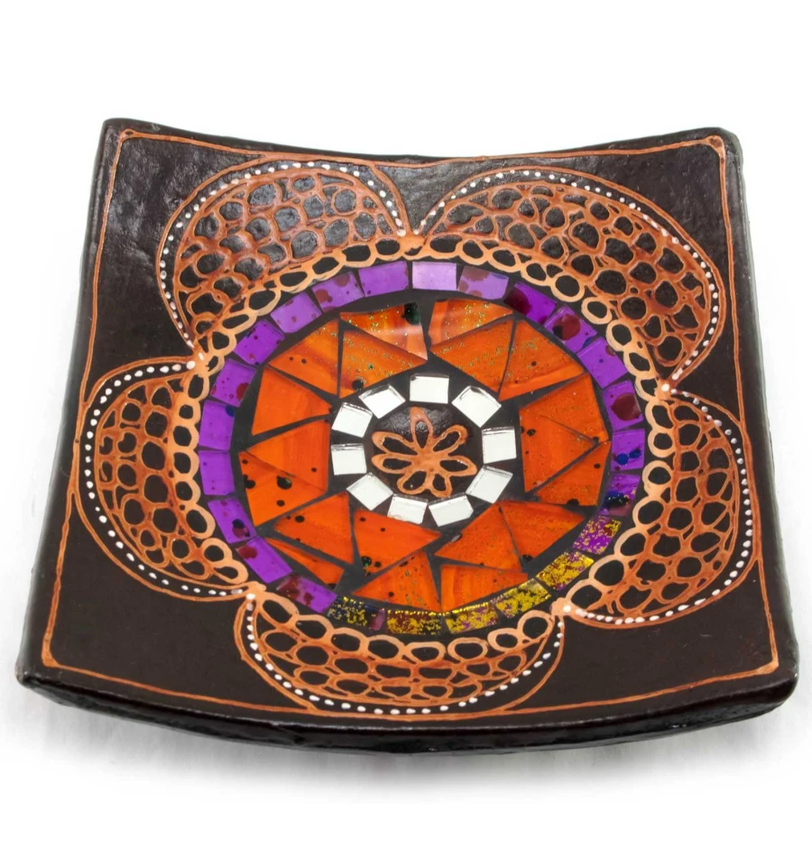 Блюдо терракотовое з мозаїкою (15×15×3 см)