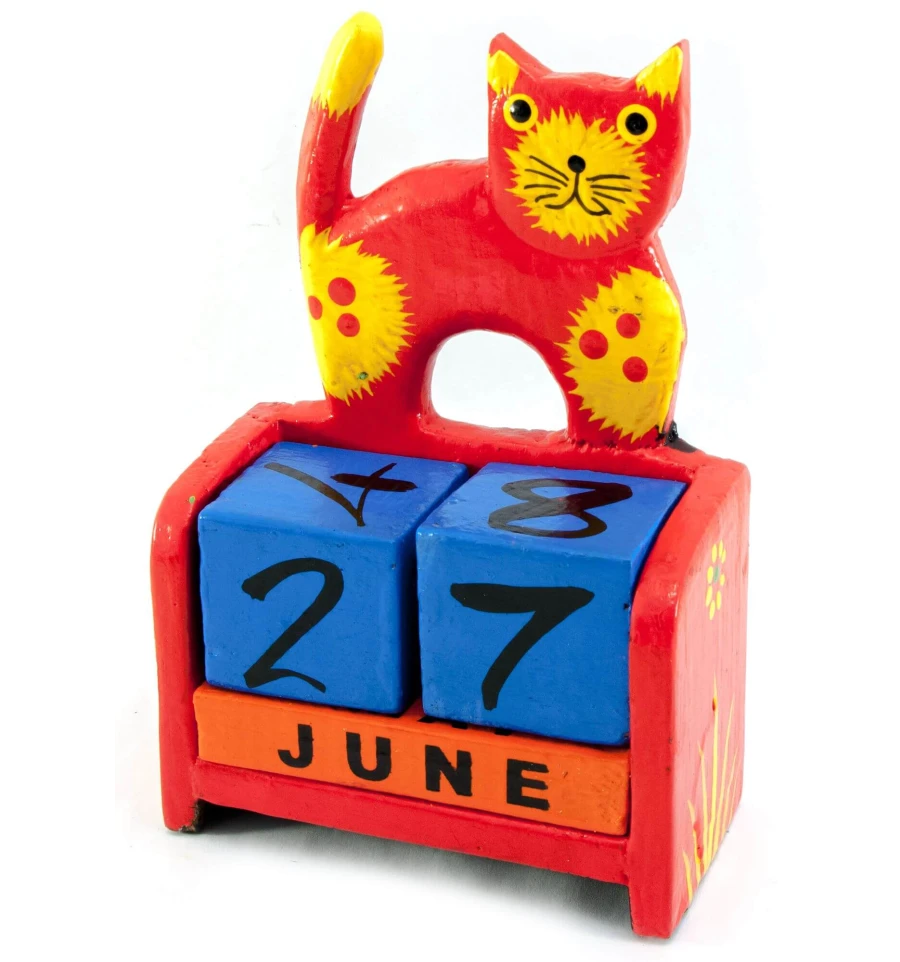 Вечный календарь «Кот» дерево алый (14.5×10×5.5 см) купить в интернет магазине подарков ПраздникШоп