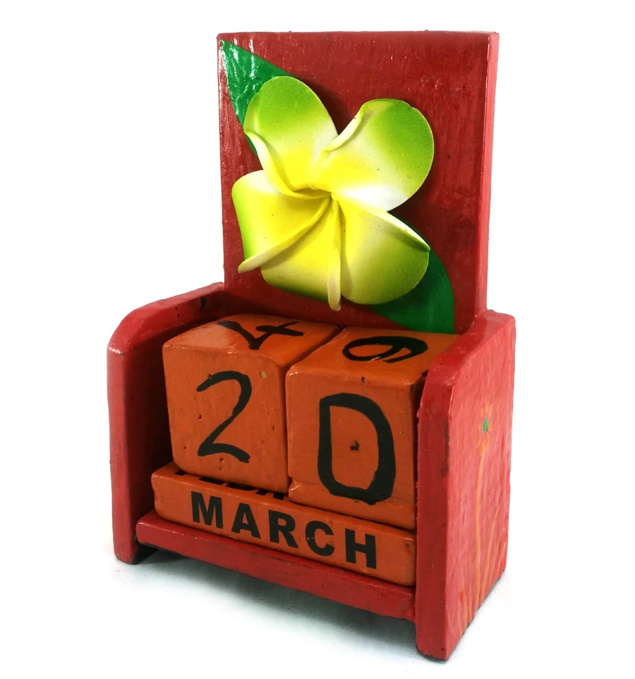Вечный календарь «Цветок» дерево красный (15×10×5 см) купить в интернет магазине подарков ПраздникШоп