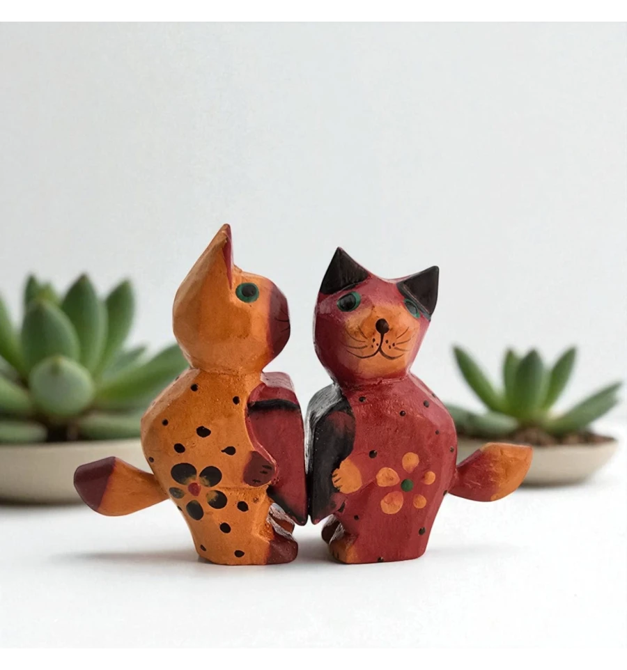 Індонезія знаходиться у тропічному раю. Індонезійці – позитивні, усміхнені люди. Твори, зроблені їх руками, несуть енергію: сонця, вічного літа, теплого моря, тропічної буйної рослинності та позитиву. Кішка стане цікавим подарунком та прикрасою будь-якого інтер'єру та створить у будинку атмосферу затишку та тепла.