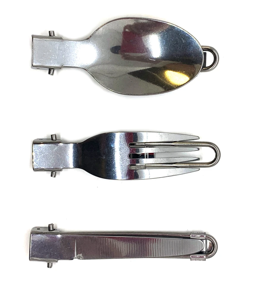 Кожен прилад у наборі зроблений із міцного металу, забезпечуючи надійність та довговічність. Вилка має розмір 16 мм, ложка – 160 мм, а ніж – 165 мм. Всі предмети набору складаються навпіл, що робить його компактним та зручним для зберігання та перенесення.