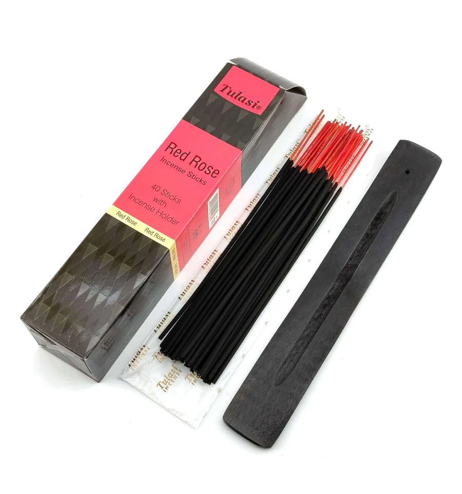 Red Rose 40 Stiks with Incense Holder (Благовония 40 штук с деревянной подставкой) (Tulasi) купить в интернет магазине подарков ПраздникШоп
