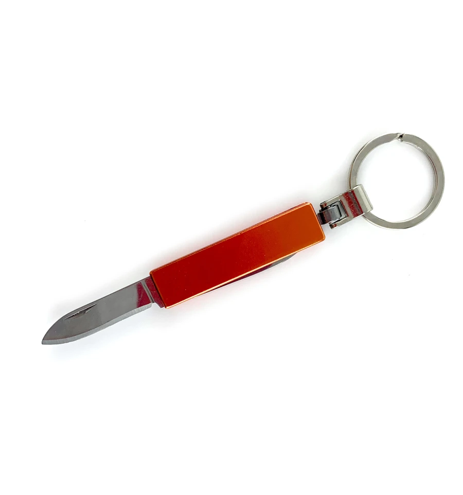 Крім того, ніж-брелок оснащений складаним ножем, який стане в нагоді в різних ситуаціях - від відкривання листів і коробок до обрізання ниток і дроту. Надійний та гострий клинок зроблений із високоякісних матеріалів, забезпечуючи точне та чисте зрізання.