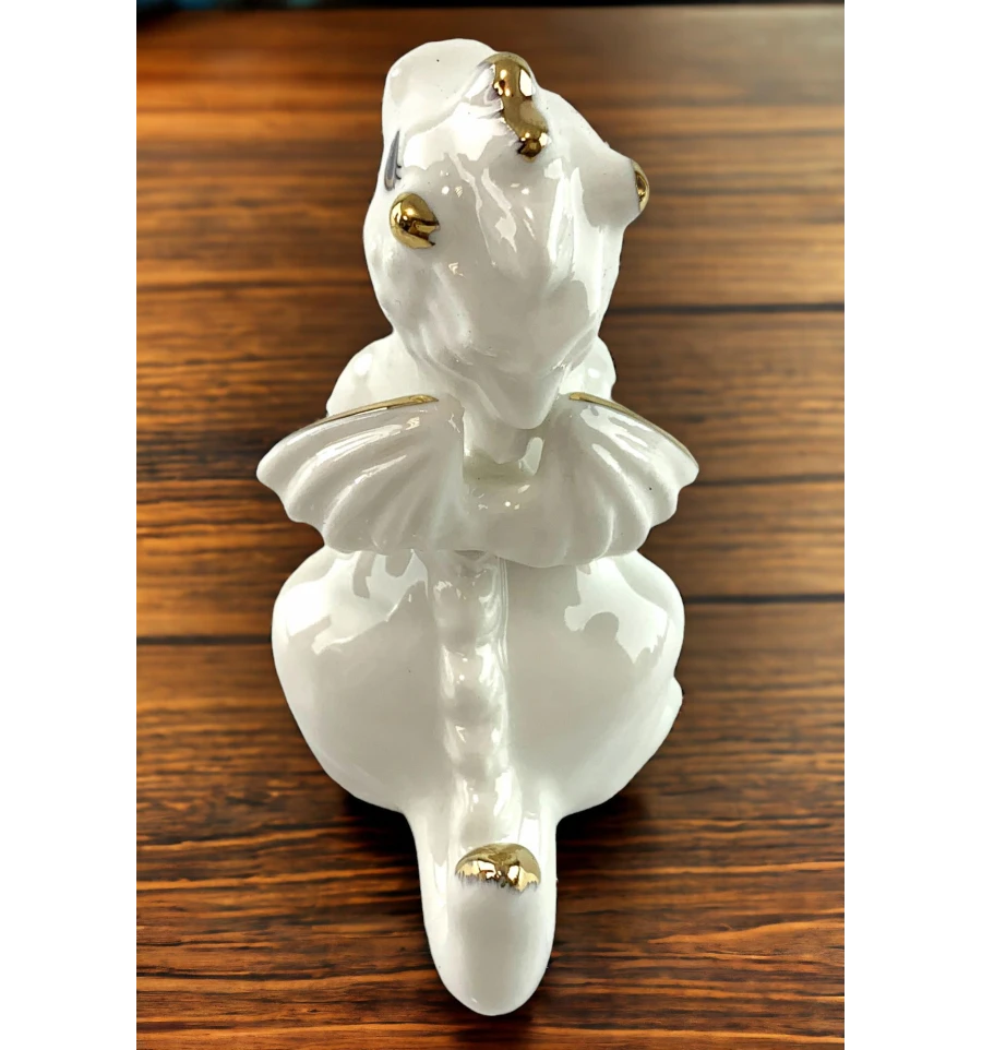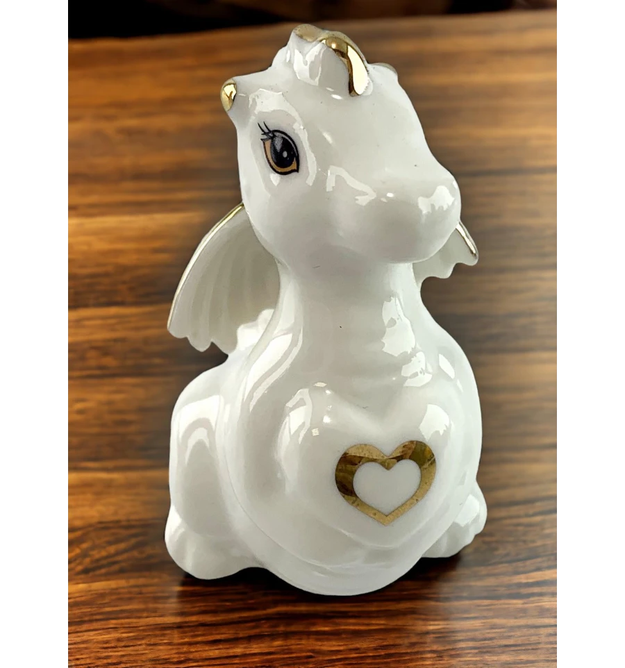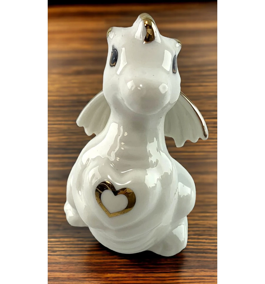 Порцеляновий дракон у білому кольорі із золотистими деталями – це не тільки витвір мистецтва, а й символ вишуканості та доброзичливості. Дракон делікатно обіймає ксердечко, ніби надаючи вам її з повагою і турботою.