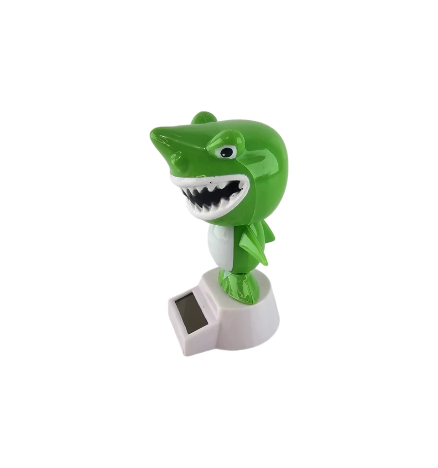 Особливістю цієї іграшки є вбудована сонячна батарея, завдяки якій при достатньому освітленні акула починає танцювати. Вона махає плавцями та головою, створюючи веселу та рухливу картину. Зображення акули з розкритим ротом додає іграшці реалістичності та емоційності.