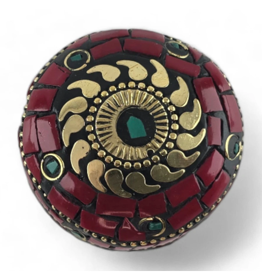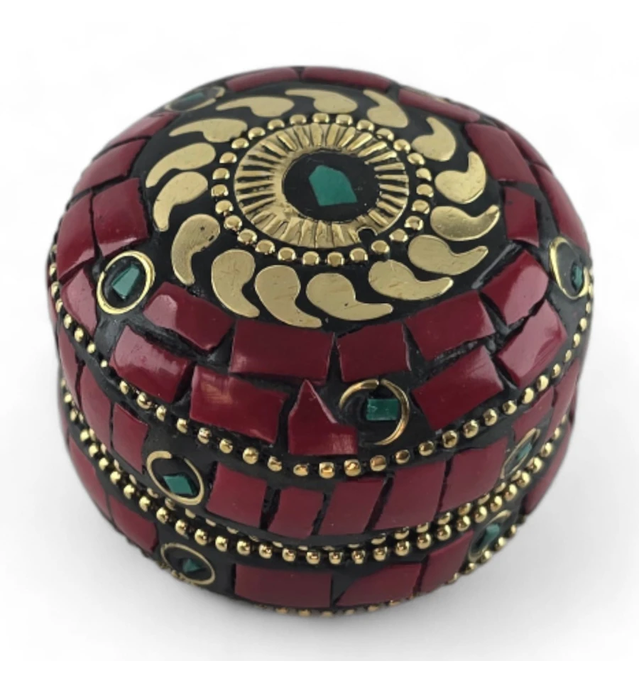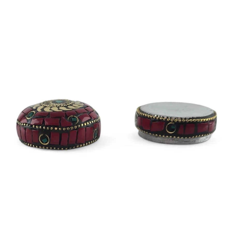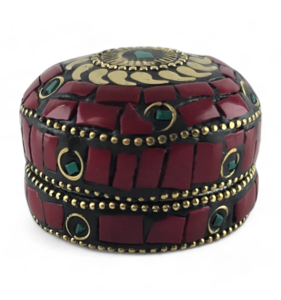 Скринька металева з коралами та бірюзою (h-3,2; d-4,7 см)