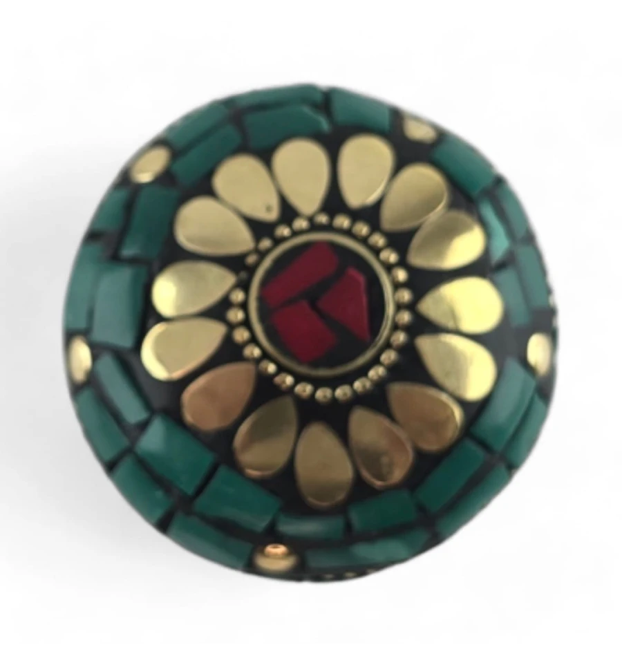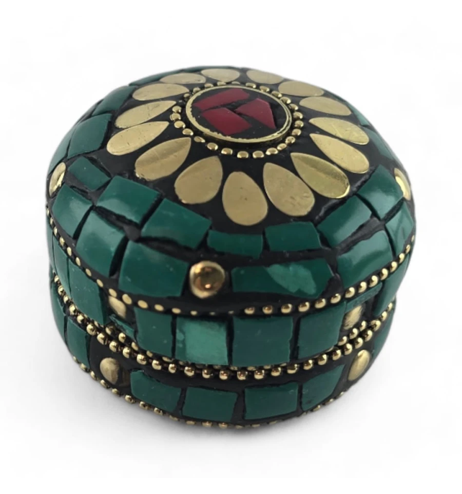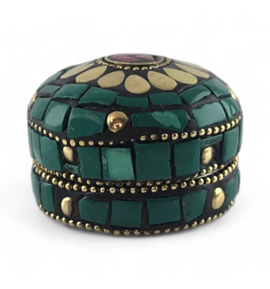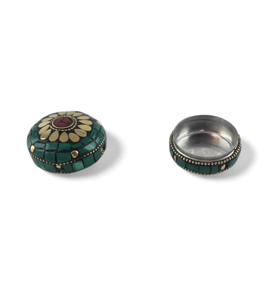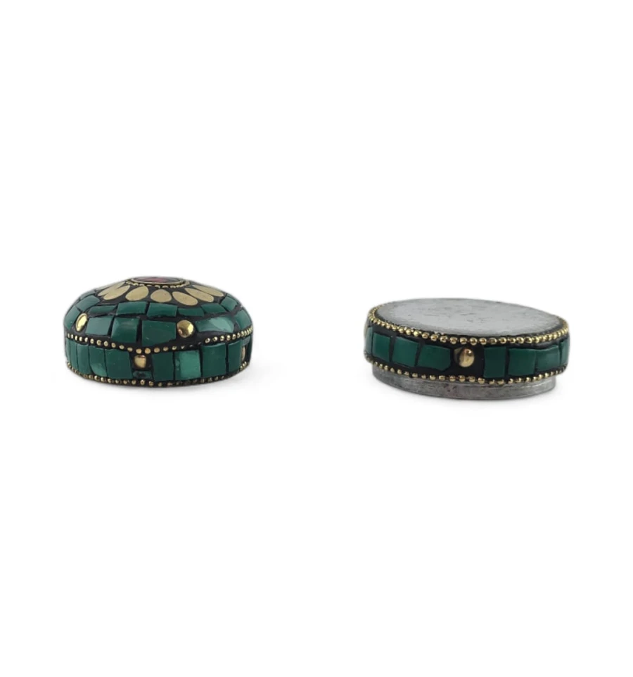 Скринька металева з коралами та бірюзою (h-3,2; d-4,7 см)