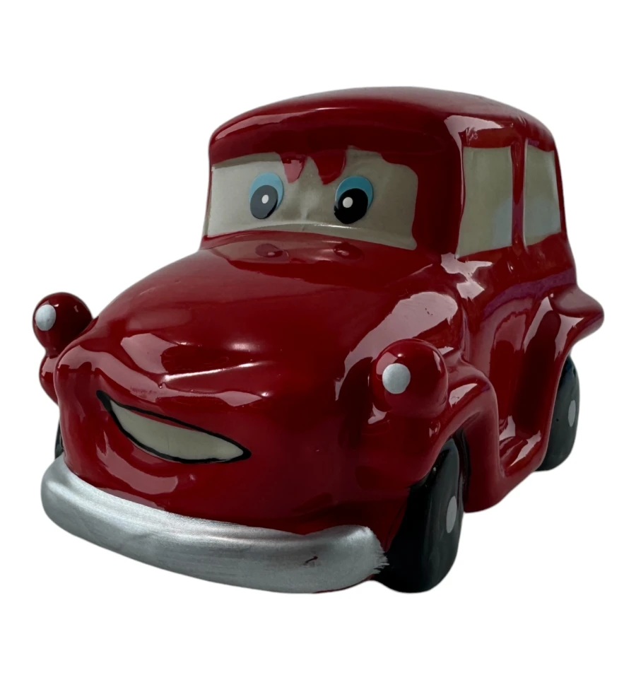 Ця чарівна керамічна скарбничка виконана у вигляді червоного ретро-автомобіля із кумедними очима та широкою посмішкою. Прекрасний декоративний елемент та функціональний аксесуар для зберігання дрібниці. Виріб має знімну гумову вставку на дні, завдяки чому монетки можна легко дістати, не розбиваючи скарбнички.