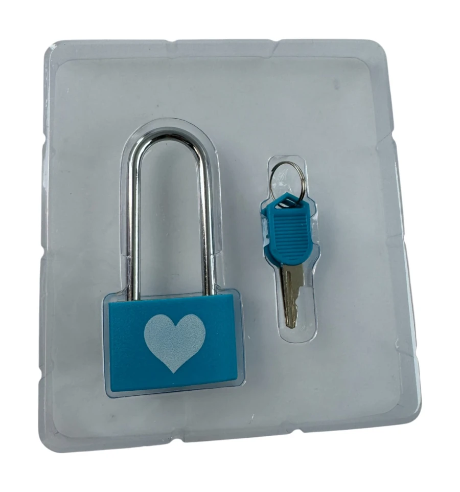 Цей замок для закоханих – символ міцного зв'язку та вічного кохання. Він виконаний у яскравому рожевому кольорі з витонченим білим серцем у центрі, що підкреслює його романтичний характер. У комплекті йдуть два ключики, дозволяючи парі разом замкнути свої почуття у цьому символі відданості. Замочок ідеально підходить для закріплення на мостах кохання, на пам'ятних місцях або для використання як подарунок, який уособлює непорушний зв'язок між двома серцями.