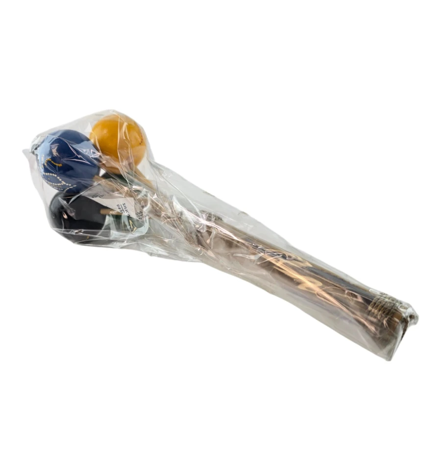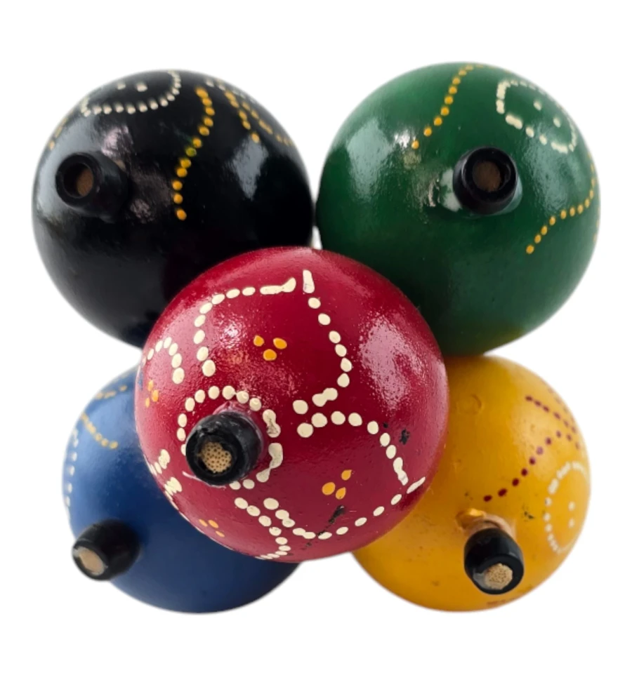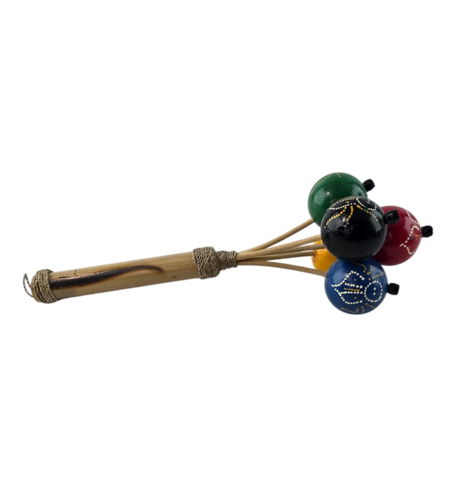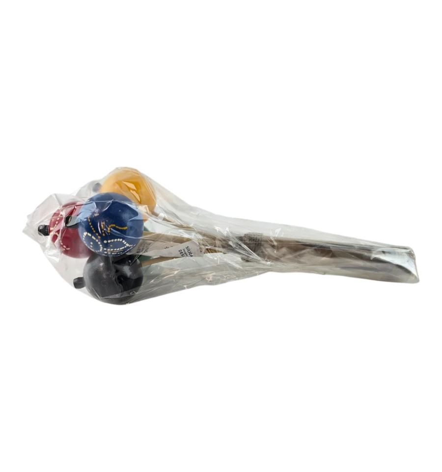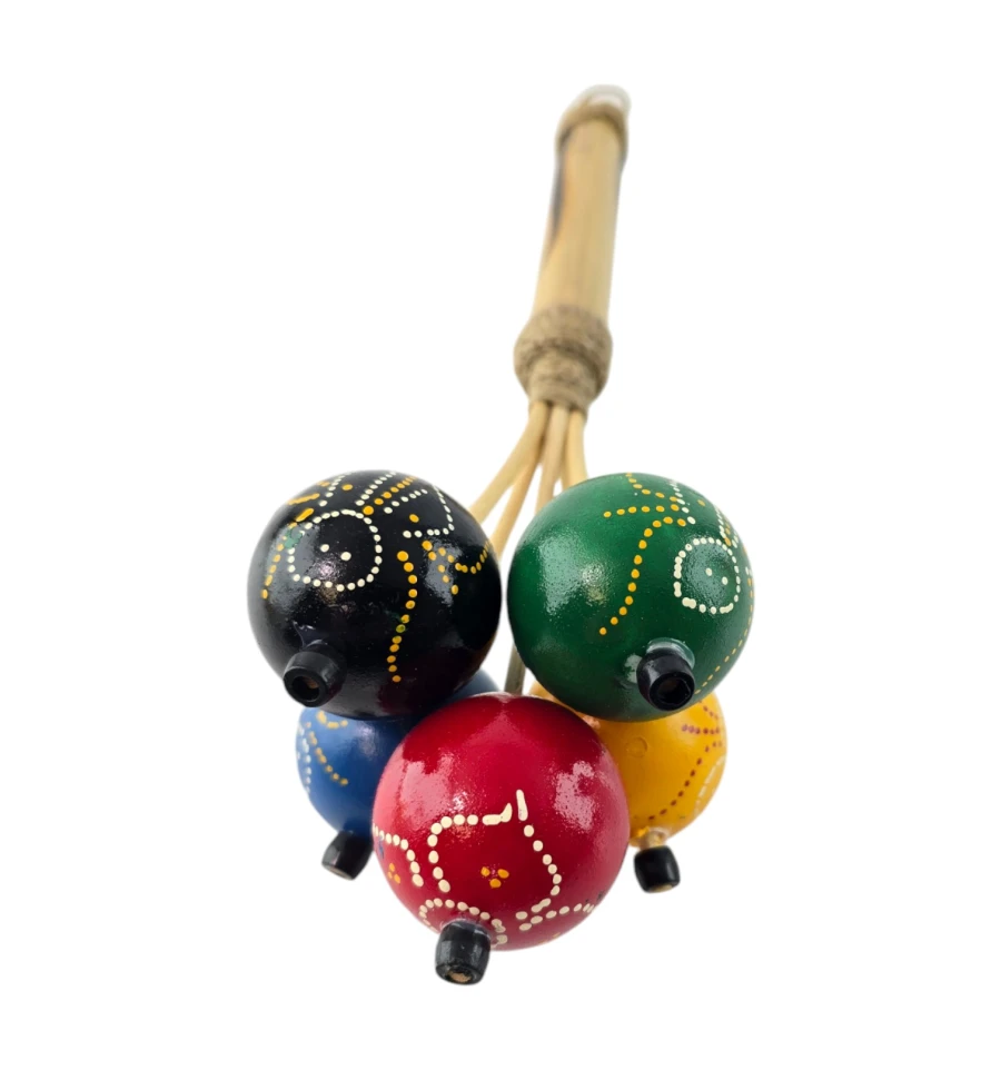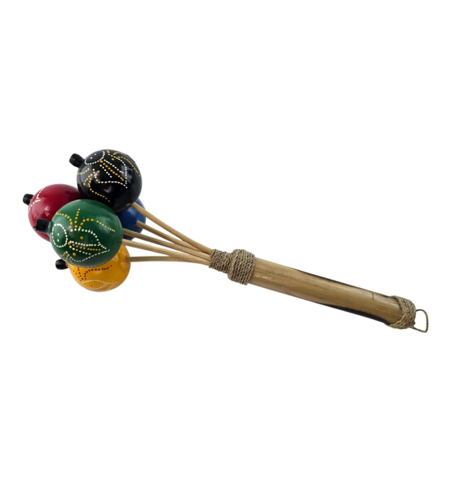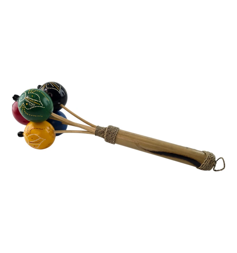 Пориньте в атмосферу традиційної музики та веселощів з яскравим маракасом "Екзотичний Ритм"! Цей маракас не тільки стане чудовим музичним інструментом, а й привнесе нотку екзотики у вашу оселю. Виготовлений вручну в Індонезії, він втілює місцеві традиції та майстерність. Дерев'яна ручка, прикрашена міцним плетенням, забезпечує зручний хват, а кульки з пластику розписані вручну та різнокольорові, що робить кожен екземпляр унікальним.