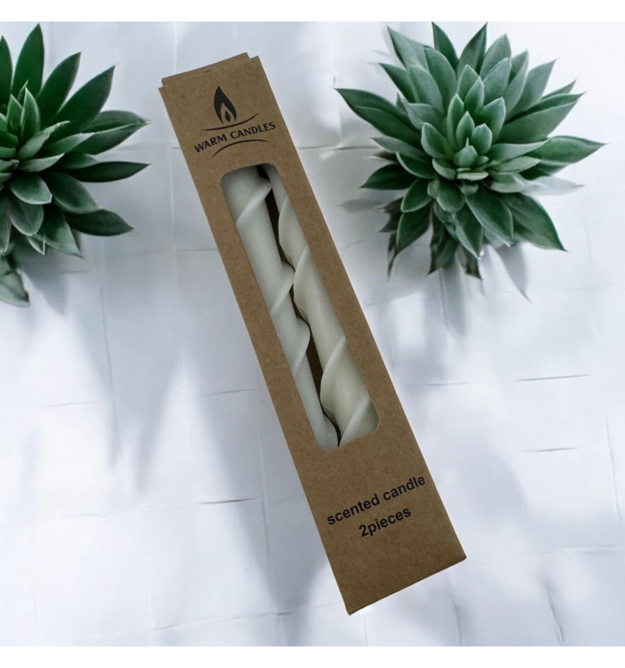 Набір з двох білих свічок з унікальною кручена форма. Ці свічки створять м'яке та рівне освітлення, додаючи елегантності будь-якому простору. Ідеальні для спокійних вечорів, медитацій чи створення затишної атмосфери в будинку. Завдяки своєму витонченому дизайну вони стануть стильним декоративним елементом, який підкреслить вашу індивідуальність та привнесе нотку магії до інтер'єру.