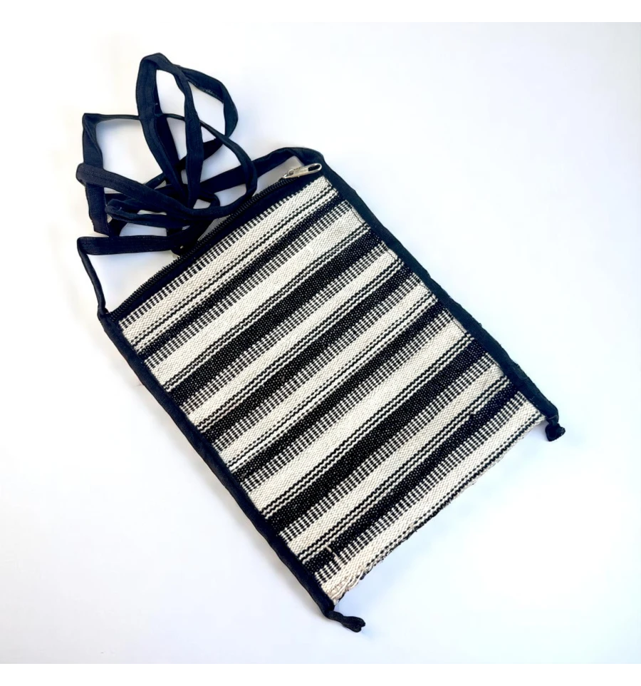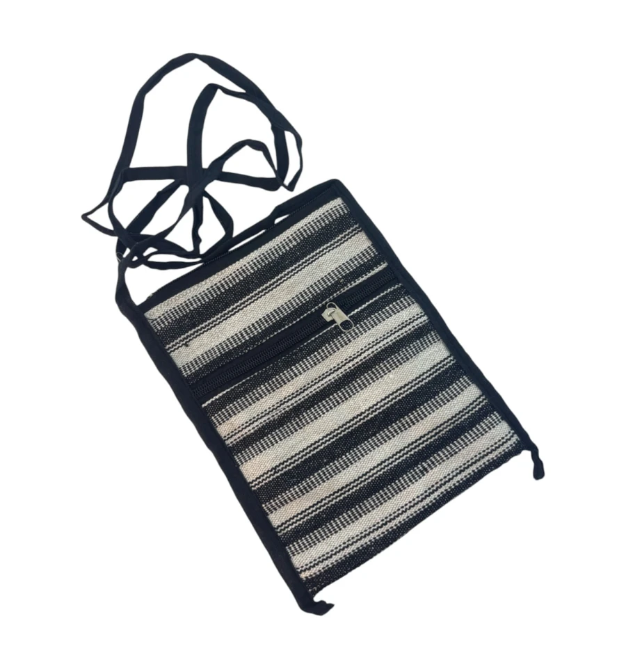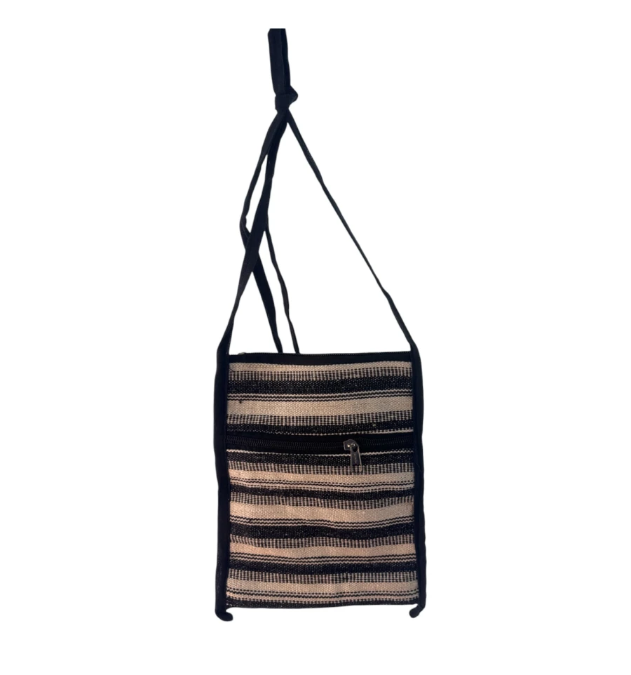 Яскрава та легка сумочка в етнічному стилі – чудовий аксесуар на кожен день або для подорожей. Зроблена в Індії, прикрашена кольоровими горизонтальними смугами, м'яка на дотик і зручна у носінні. Основний відділ застібається на блискавку, зовнішня кишеня, так само на блискавці, допоможе тримати під рукою дрібниці. Компактний розмір дозволяє носити її через плече або як кросбоді.