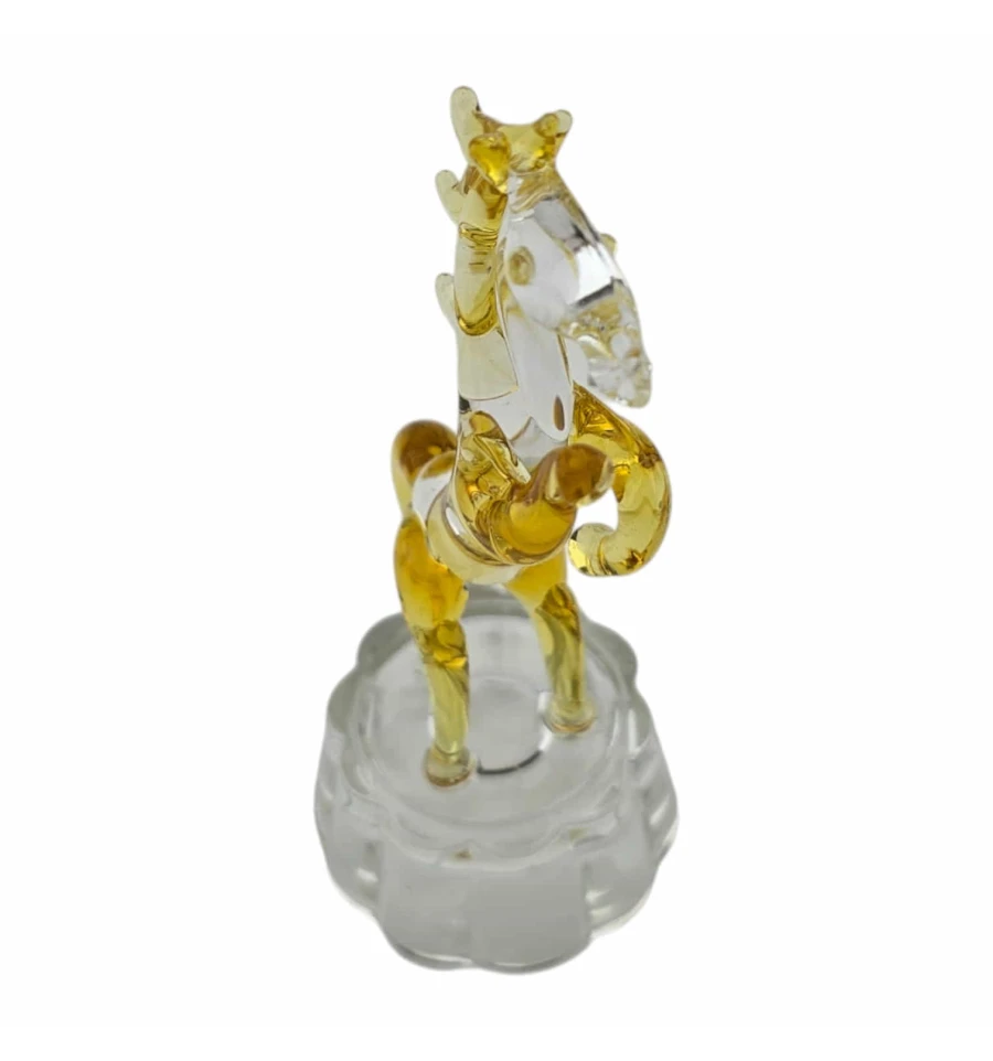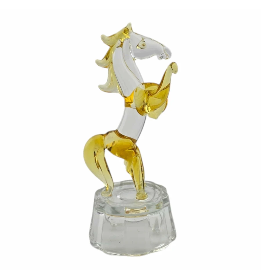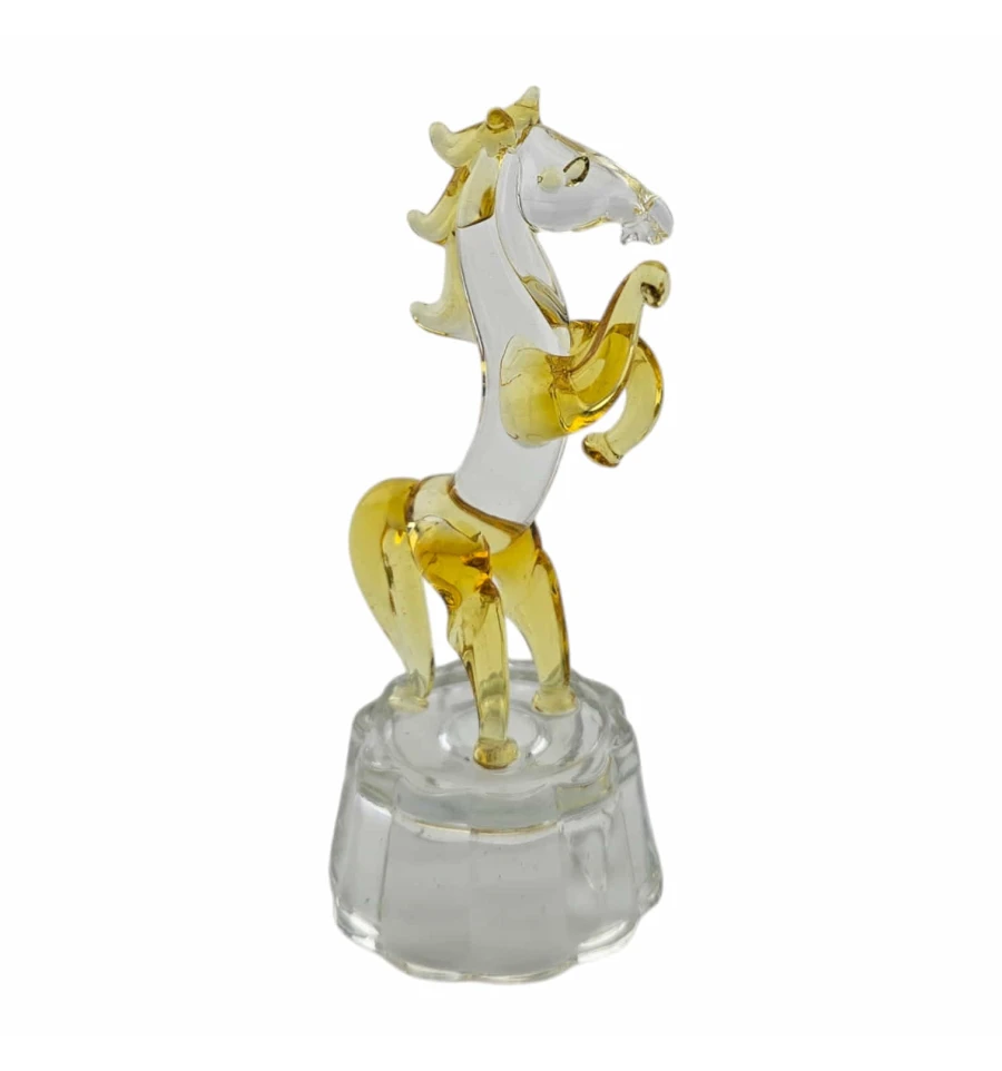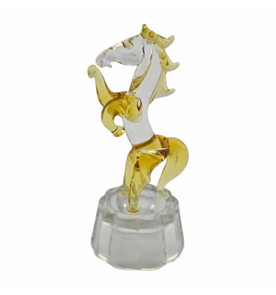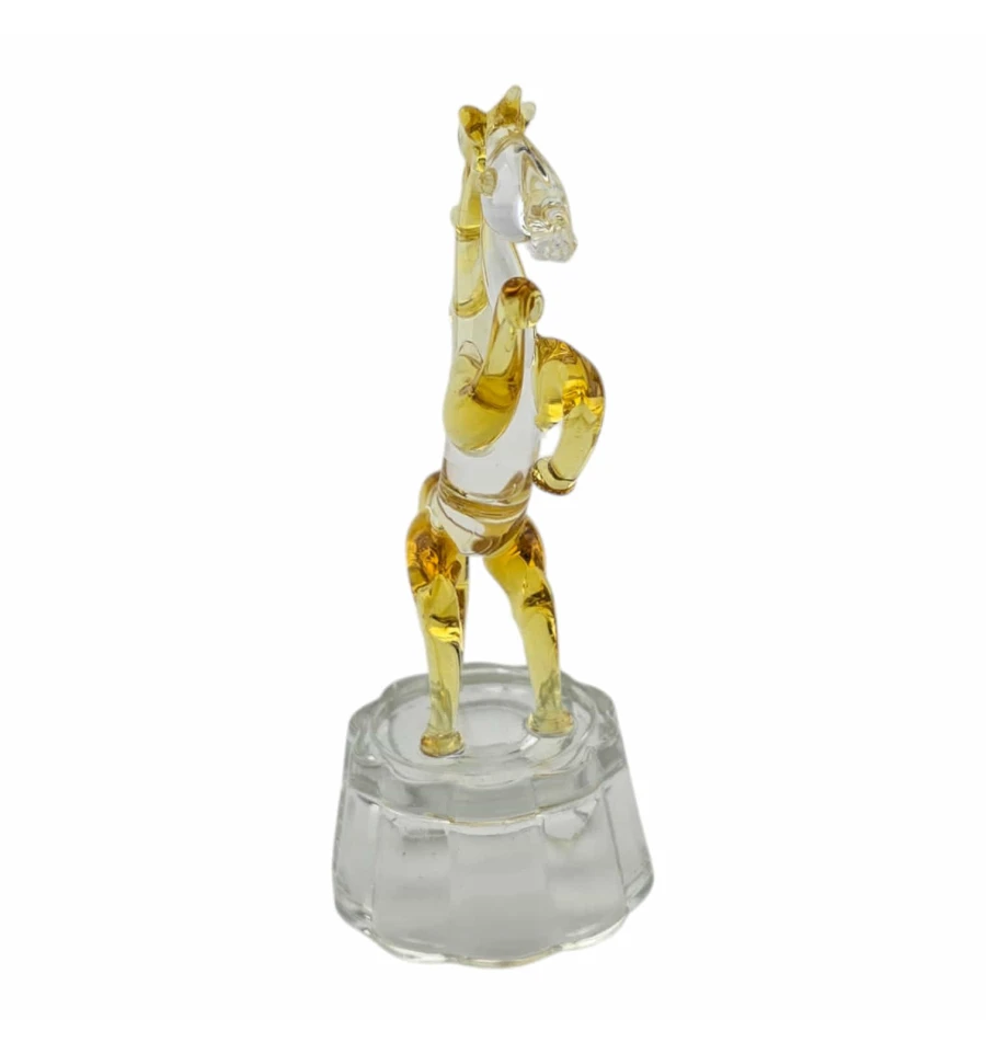 кришталева статуетка, фігурка кінь, скляна фігурка, кінь на дибах, прозоро-золотистий, сувенір кінь, декор інтер'єру, подарунок, колекція мініатюр, кришталь, Китай
