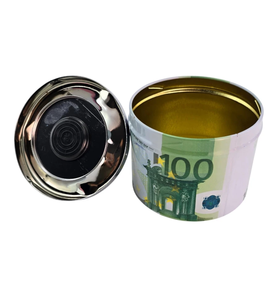 Стильна попільничка зі спіральним механізмом у дизайні «100 Євро». Натисніть кнопку - попіл і недопалок провалюються всередину, що зменшує запах і безладдя. Металевий корпус стійкий до нагріву, легко очищається. Компактний розмір зручний для дому, офісу, бару чи тераси. Практичний подарунок курцеві та помітний інтер'єрний акцент.