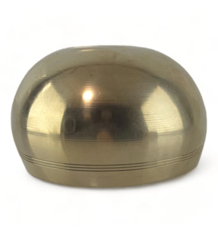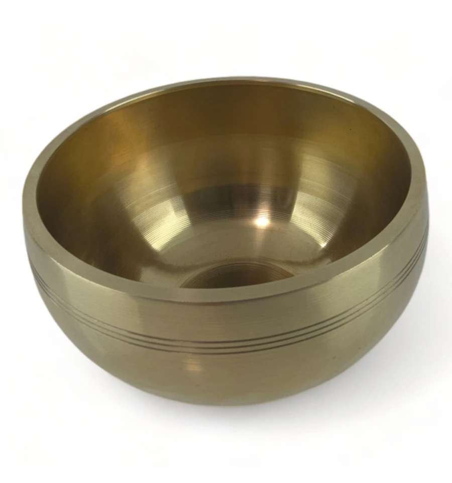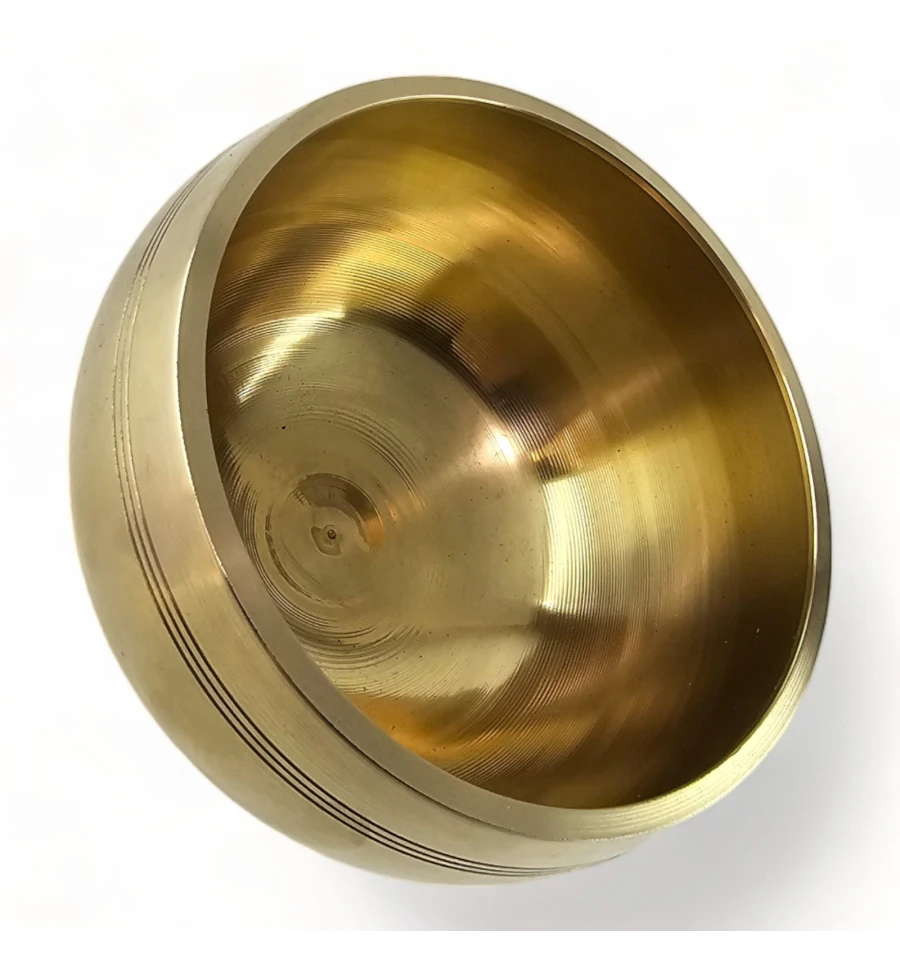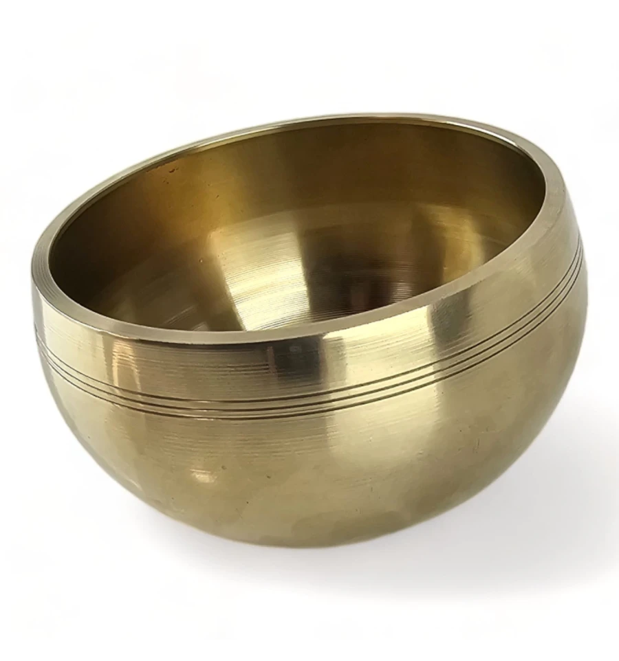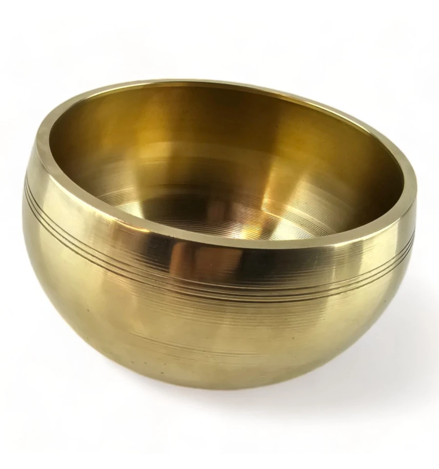 Тибетська співуча чаша із бронзи, золотистого кольору, є виразом давньої традиції та ремесла, що переходить від покоління до покоління. Ця чаша відрізняється своєрідністю та унікальністю завдяки ручній роботі, що може виявлятися в дрібних нерівностях або інших невеликих відхиленнях, що надає їй характеру і особливого шарму.