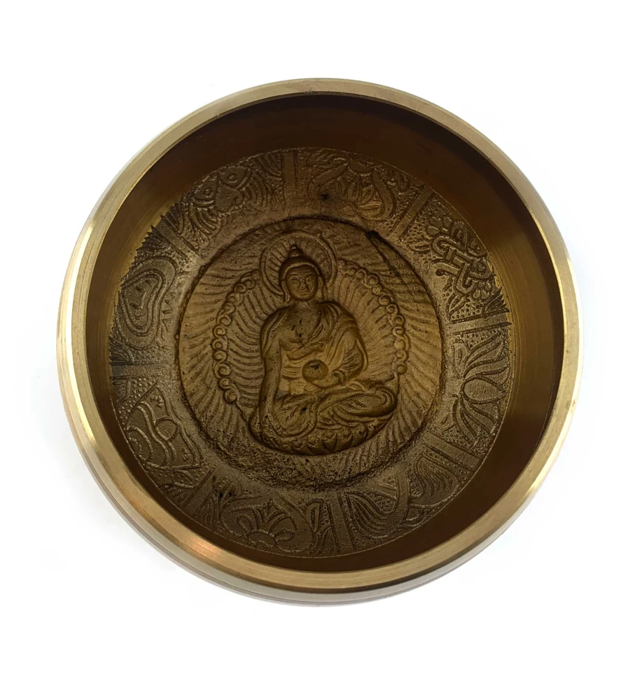 Усередині чаші витончено зображено Будда – символ мудрості, спокою та внутрішнього просвітлення. Його присутність усередині чаші приносить гармонію та натхнення при кожному звуку.