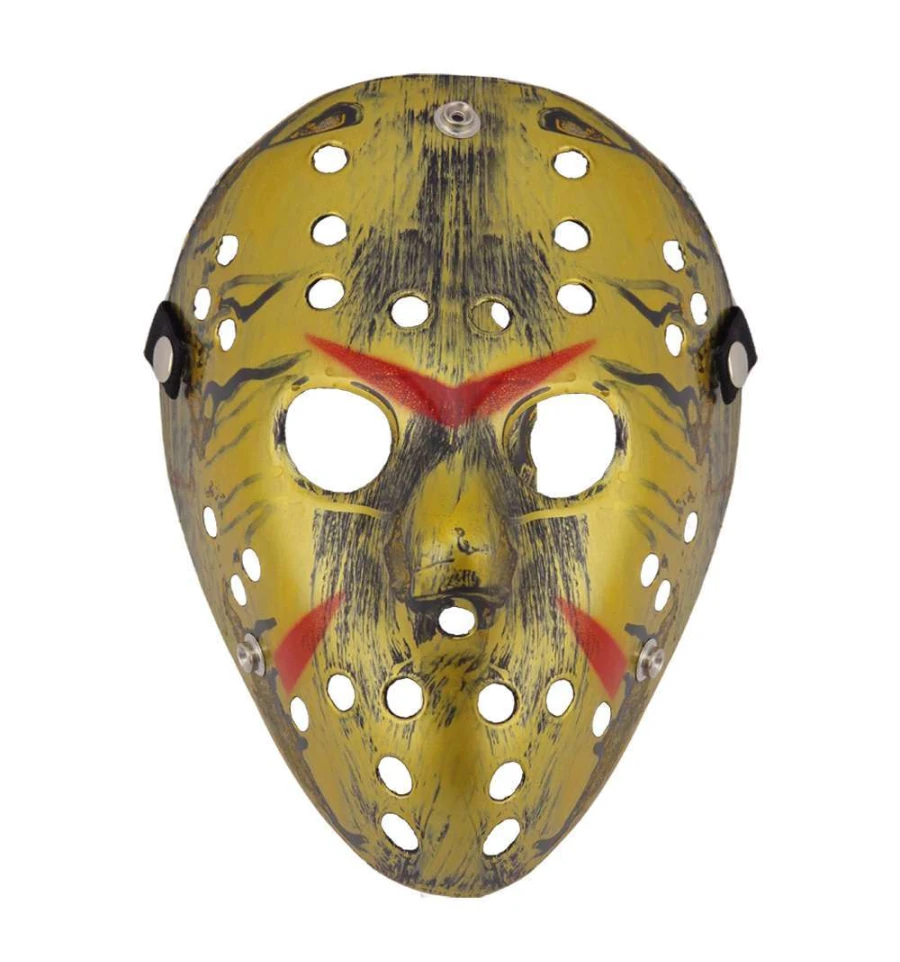 До вашої уваги представлена так звана хокейна маска Джейсона Вурхіза — вигаданого персонажа та головного героя серії фільмів жахів П'ятниця 13-е. Джейсон кривавий маніяк і вбивця, широко відомий своїми жорстокими способами розправ над невинними жертвами. Щоб приховати своє потворне обличчя, Джейсон носить хокейну маску, яка змушує серце битися сильніше при одному погляді на неї. Маска Джейсона була змодельована випадковим чином з воротарської маски американської команди з хокею на льоду Detroit Red Wings, яку приніс на знімальний майданчик фахівець з 3D-ефектів картини і великий фанат хокею за сумісництвом Мартін Джей Садофф. Після цього маска використовувалася практично у всіх фільмах серії. Ніхто з знімальної групи, режисерів, продюсерів та акторів не міг і припустити, що в майбутньому ця хокейна маска допоможе стати персонажу фільму одним з найвідоміших кіно - героїв у світі. Тепер купити маску Джейсона ви можете і в нашому інтернет-магазині. Маска виконана з високоякісного високоміцного пластику. Зручно сидить на голові завдяки трьом резинкам. Маска Джейсона - чудовий варіант для костюма на Хелловін або Новий Рік.