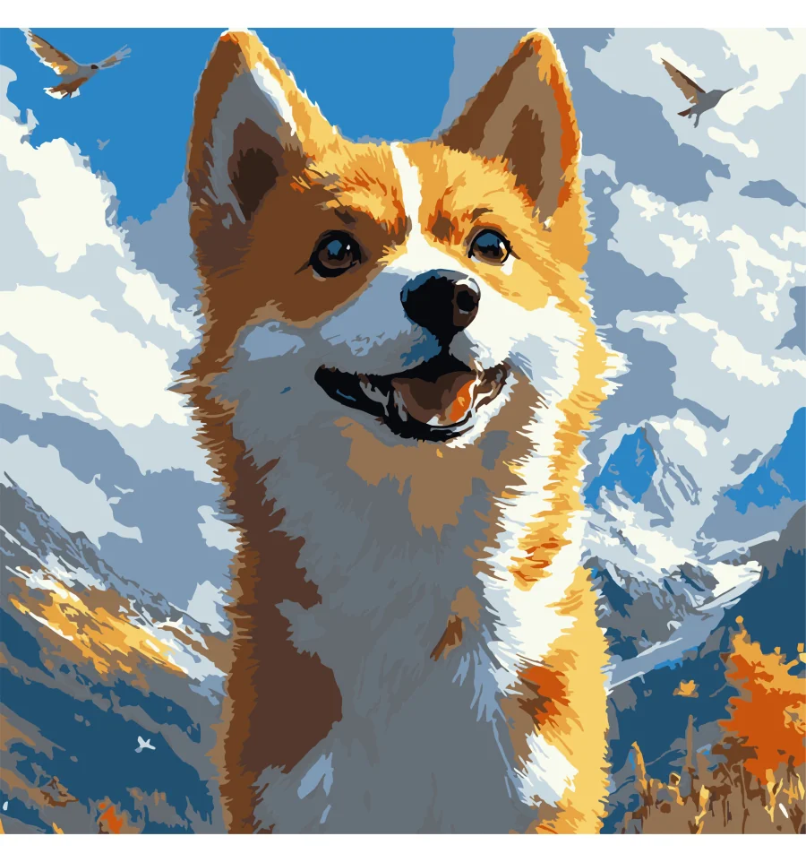 Картина по номерам Корги на ветру  30х30 (ES-0905) купить в интернет магазине подарков ПраздникШоп