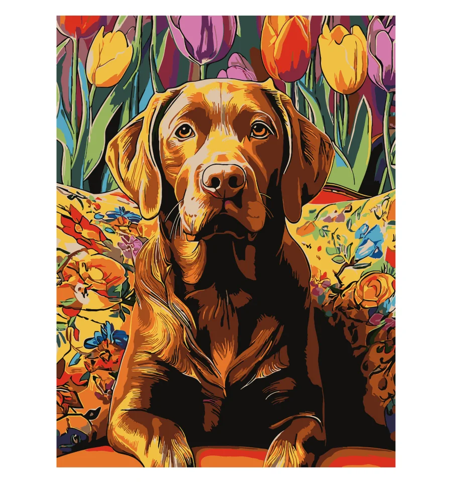 Картина по номерам Пес среди тюльпанов  30Х40 (SS-1288) купить в интернет магазине подарков ПраздникШоп