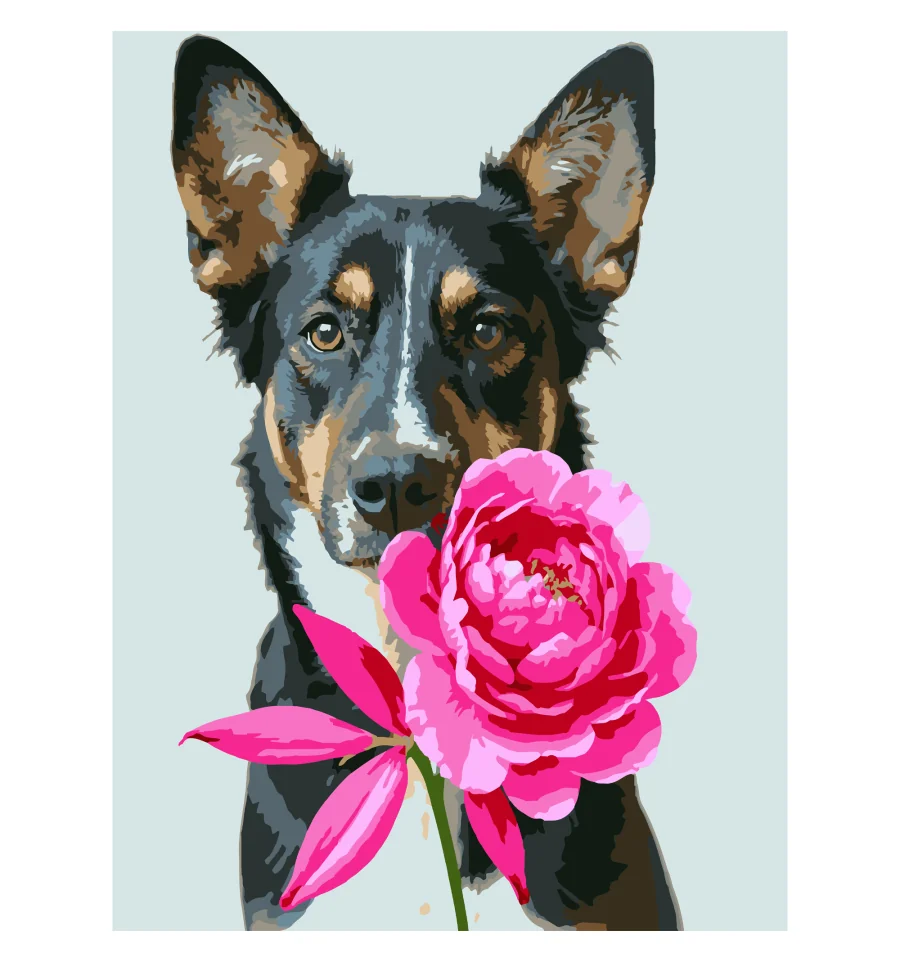 Картина по номерам Пес с пионом  30Х40 (SS-1310) купить в интернет магазине подарков ПраздникШоп