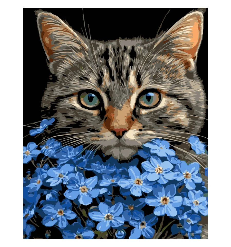 Картина по номерам Кот среди голубых цветов на черном фоне 40Х50 (AH1273) купить в интернет магазине подарков ПраздникШоп