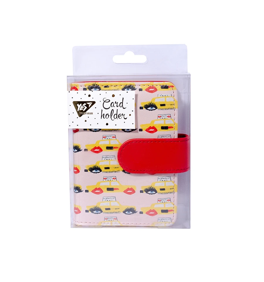 Візитниця - картхолдер серії "FANCY", торгової марки Yes - компактний і стильний аксесуар для зберігання візиток, кредитних і знижкових карток. Доповнить колекцію однойменної серії! Аксесуар розрахований на 40 карток, які будуть зберігатися в щільному, прозорому ПВХ. Обкладинка виконана з екошкіри, закривається клапаном з двома кнопками, за допомогою яких регулюється щільне закриття, в залежності від наповнення аксесуара картами. Розмір: 9 х 11 см.