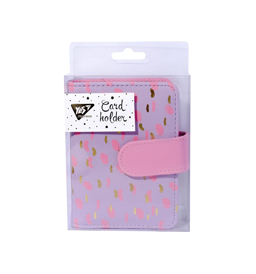 Візитниця - картхолдер серії "Viola", торгової марки Yes - компактний і стильний аксесуар для зберігання візиток, кредитних і знижкових карток. Доповнить колекцію однойменної серії! Аксесуар розрахований на 40 карток, які будуть зберігатися в щільному, прозорому ПВХ. Обкладинка виконана з екошкіри, закривається клапаном з двома кнопками, за допомогою яких регулюється щільне закриття, в залежності від наповнення аксесуара картками. Розмір: 9 х 11 см
