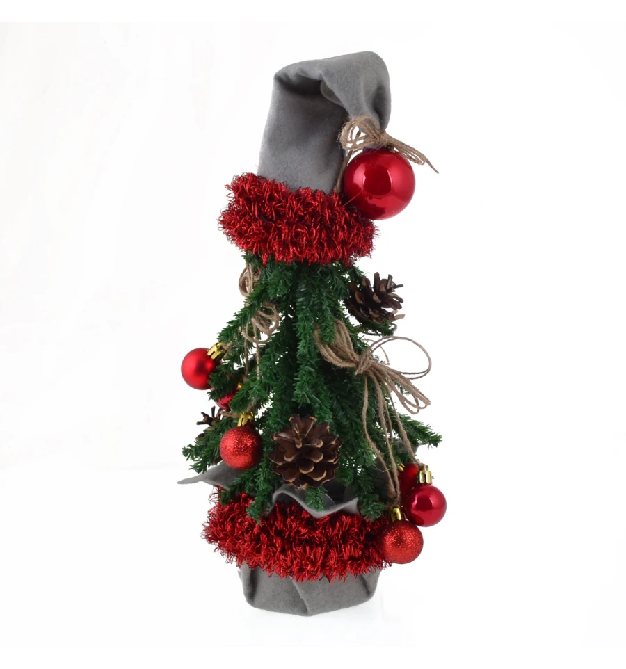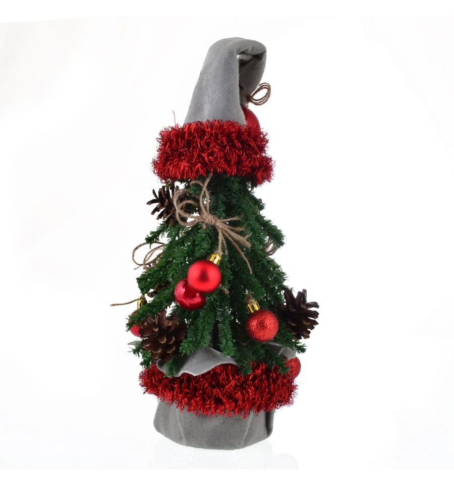 Ялинка "Дід Мороз", виконана за допомогою високоякісної мішури, м‘якого фетру, натуральних ялинкових шишок і маленьких куль червоного кольору, стане оригінальною тематичною прикрасою приміщення напередодні новорічних і різдвяних свят. Висота композиції: 38 см. Габарити: 0,38м.