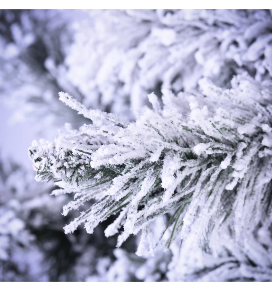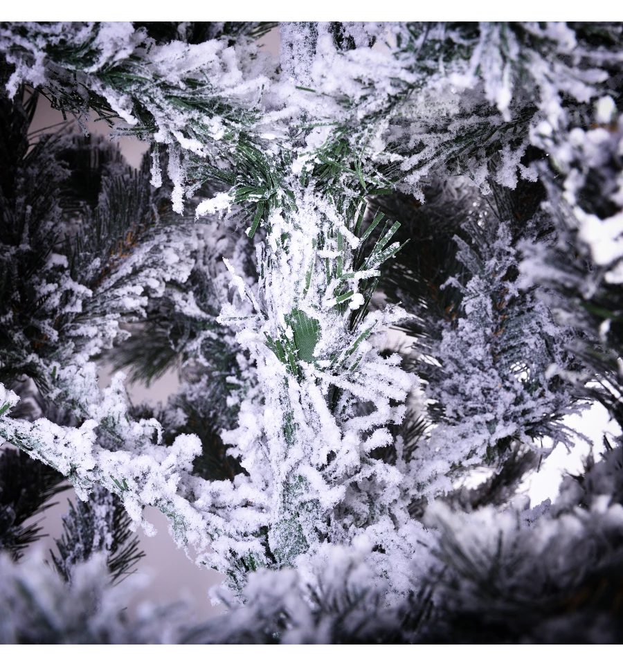 Штучна засніжена ялинка максимально подібна натуральному дереву. Всі матеріали екологічно чисті, мають протипожежні властивості. Великим плюсом штучної ялинки є її довговічність, а складання конструкції не забере багато часу. Красиве і пишне новорічне дерево буде щорічно наповнювати будинок радістю і благополуччям у різдвяний період. Матеріал: ПВХ плівка шириною 8,5 см; метал; дріт. Висота: 210 см. Діаметр нижнього ряду: 126 см. Стовбур ялини складається з двох частин. Підставка ялини — це металева хрестовина з болтами, що закріплюють стовбур. Габарити: 2,10 м.
