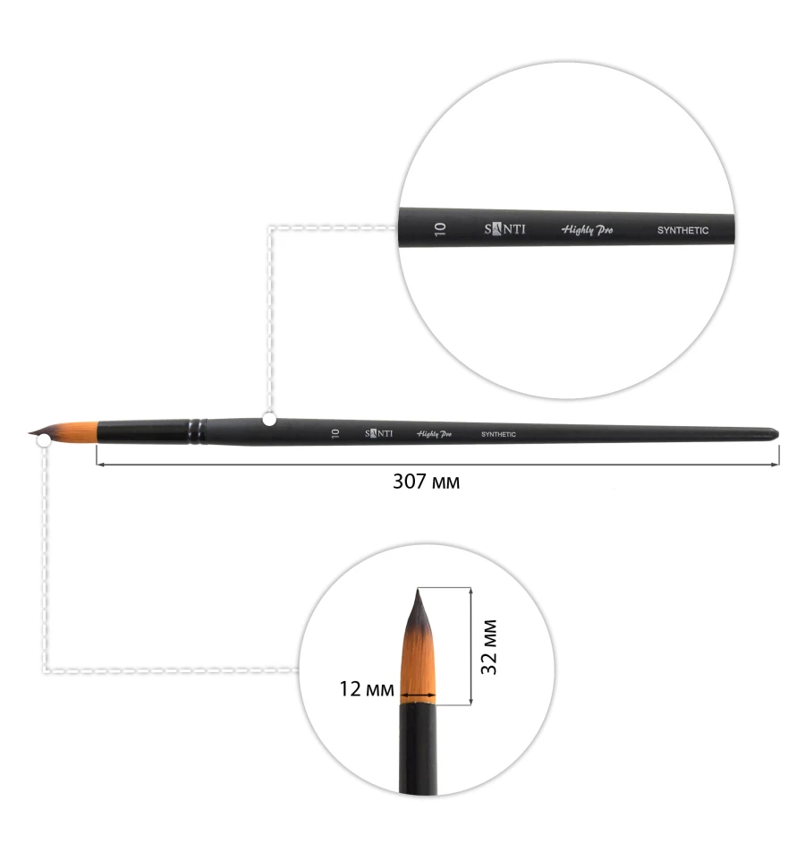 Художній пензель, синтетика "Santi Highly Pro", довга ручка, кругла, №10