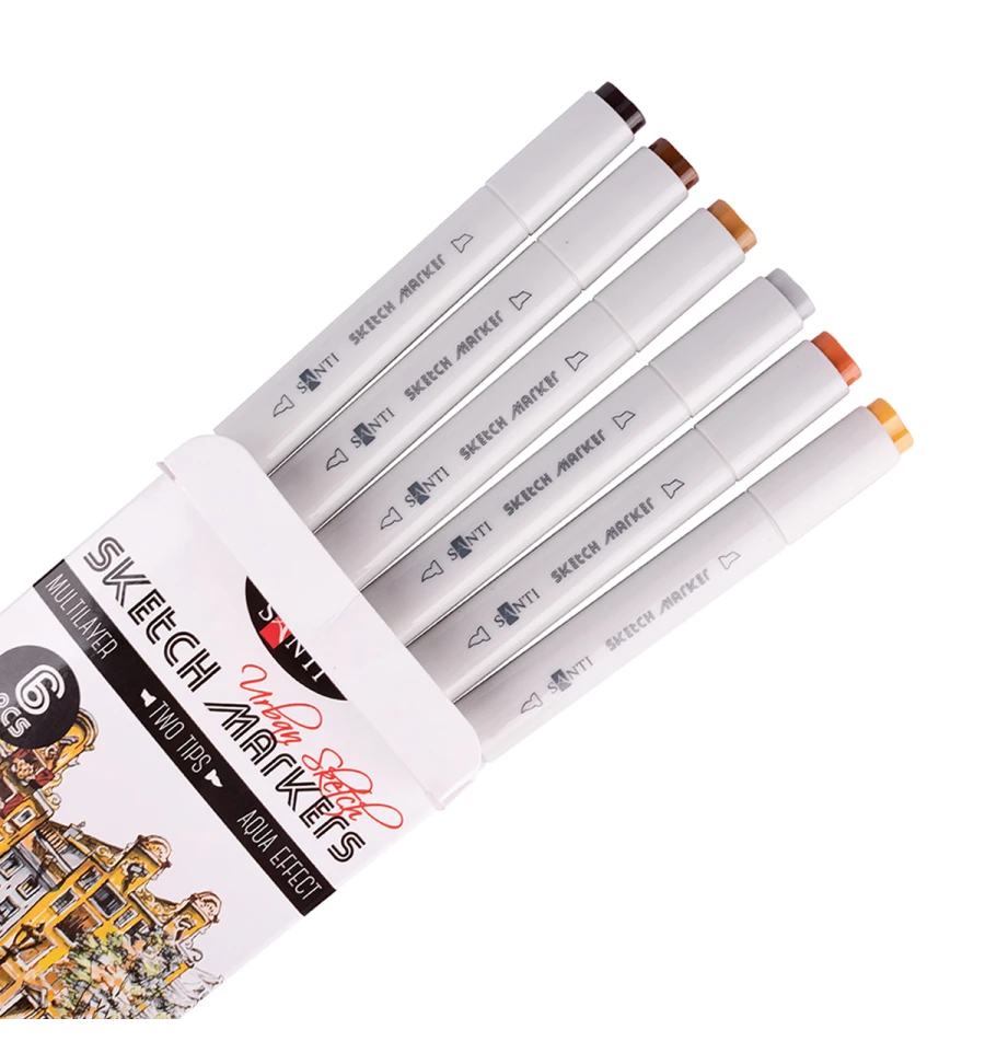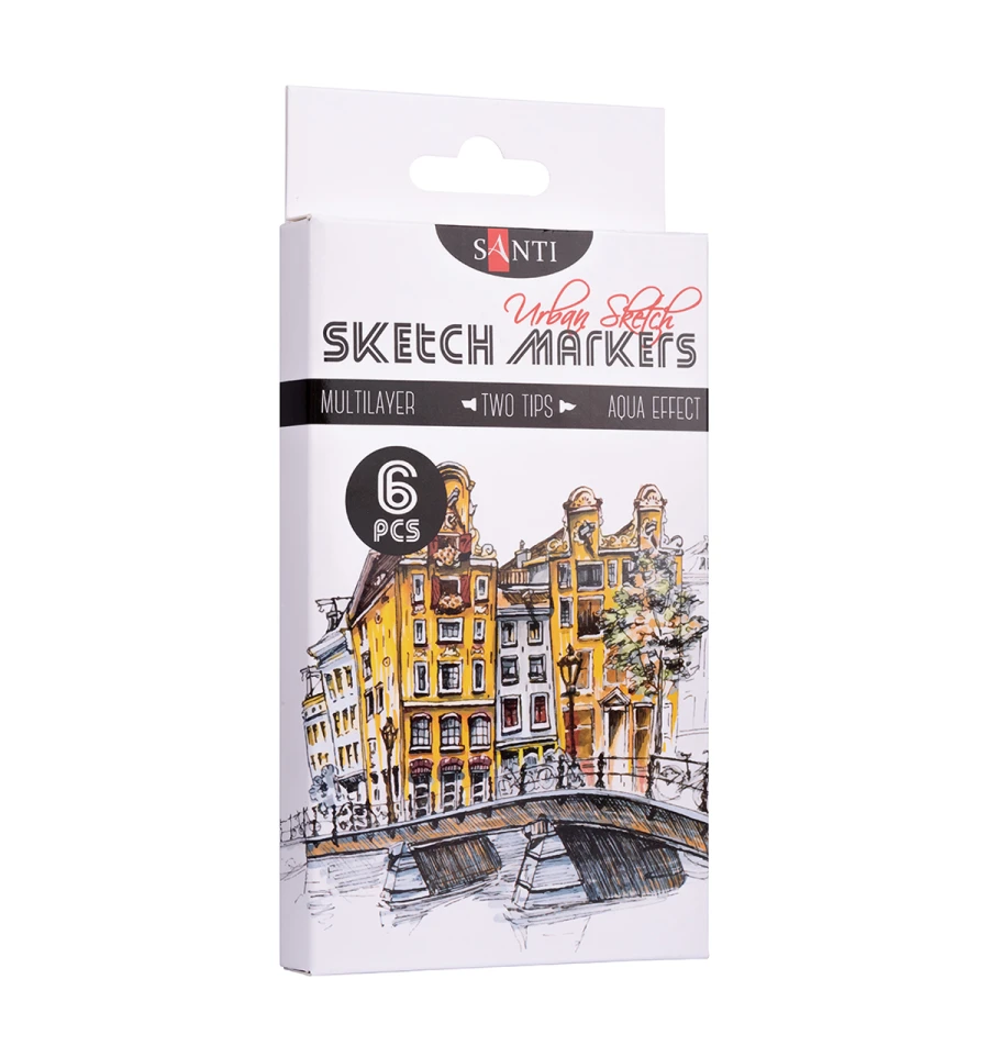 Скетч-маркери SANTI - це безмежні можливості для ваших малюнків! Тематичний набір "Urban Sketch" з 6 маркерів стане незамінним помічником для малювання міських пейзажів.